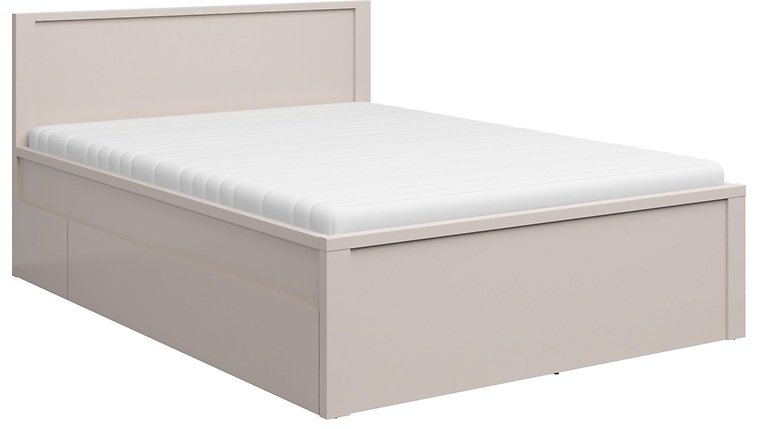 Krevet Kaspian 160/T u toplom tonu kašmira suvremeni je komad namještaja koji svojom jednostavnom, ali izrazitom formom stvara harmoničnu atmosferu u spavaćoj sobi. Izrađen je u priznatoj tvornici Black Red White u Poljskoj, gdje je kvaliteta izrade već desetljećima sinonim za pouzdanost i dug vijek trajanja. Model pripada kolekciji Kaspian, poznatoj po minimalističkom dizajnu, čistim linijama i robusnim bočnim pločama, zbog čega namještaj djeluje istodobno moderno i stabilno.