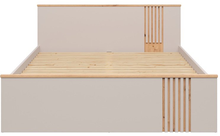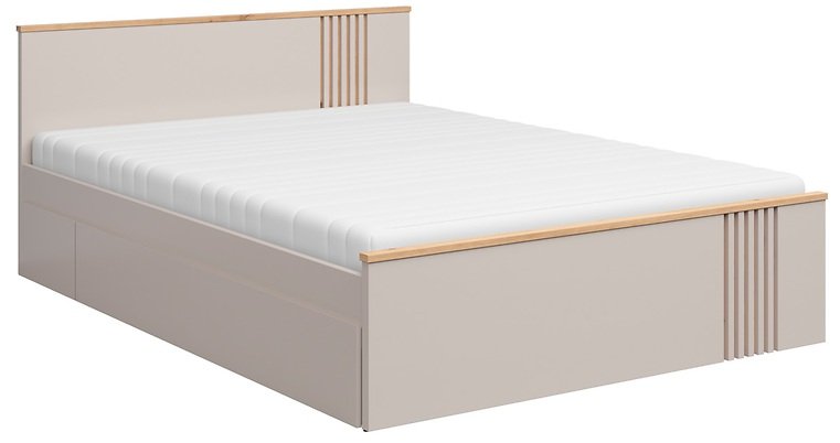 Krevet Brevas je elegantan izbor za sve koji u spavaćoj sobi traže moderan izgled u kombinaciji s toplinom prirodnih tonova. Vanjske dimenzije 166x206,5x85,5 cm i ležište veličine 160x200 cm predstavljaju savršenu ravnotežu između prostranosti i udobnosti. Izrađen je od izdržljivih materijala, kao što su laminirana ploča i MDF letvice, što osigurava stabilnost i dug vijek trajanja. Kombinacija boja hrasta artisan i kašmira pruža profinjen izgled koji se lijepo slaže s različitim stilovima unutarnjeg uređenja – od modernog minimalizma do klasične elegancije.