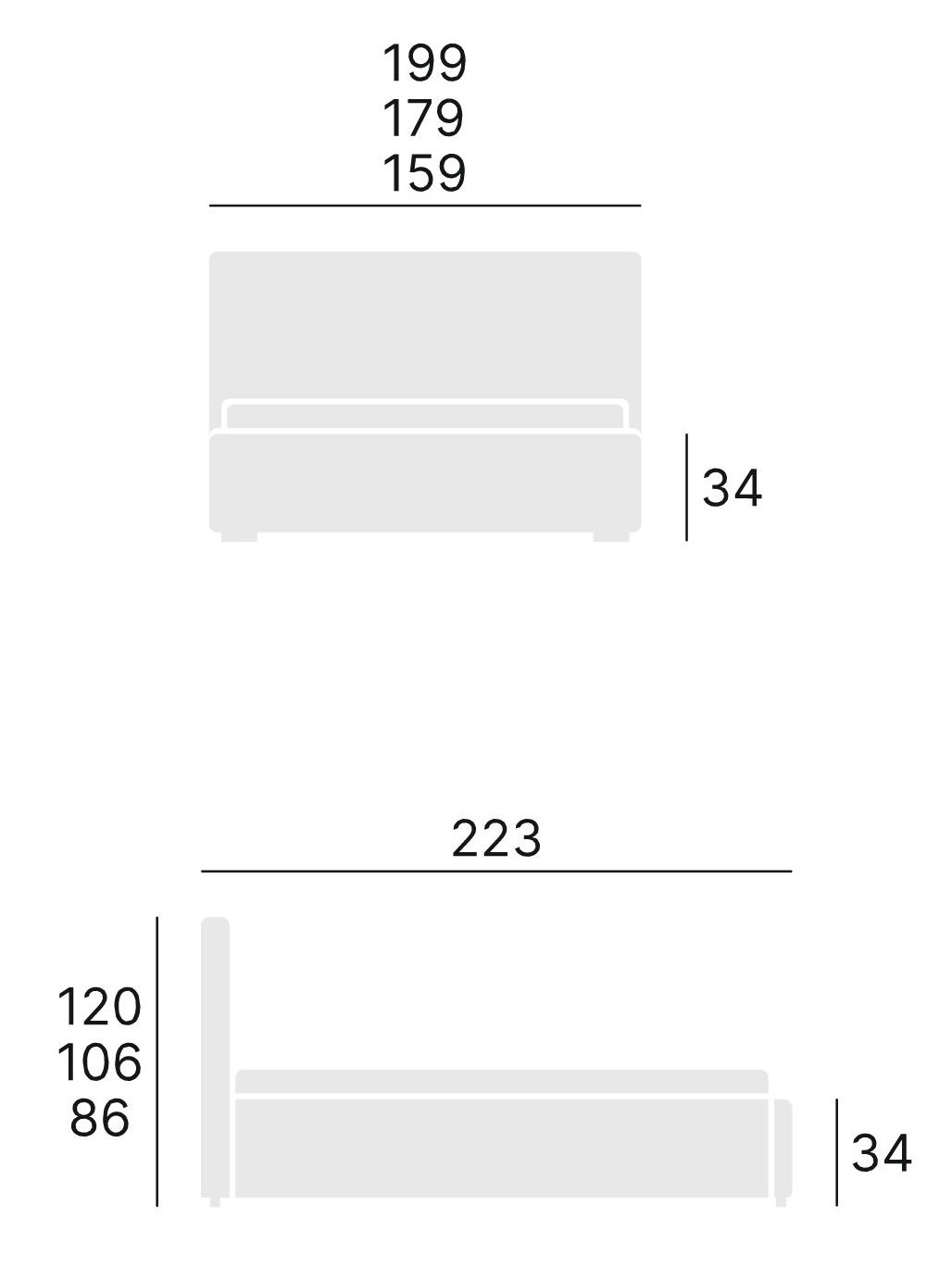 Možete birati tri mogućnosti visine naslona. Također možete odabrati ladicu za posteljinu (otvaranje s prednje strane s mehanizmom za podizanje i okvirom) ili samo okvir.