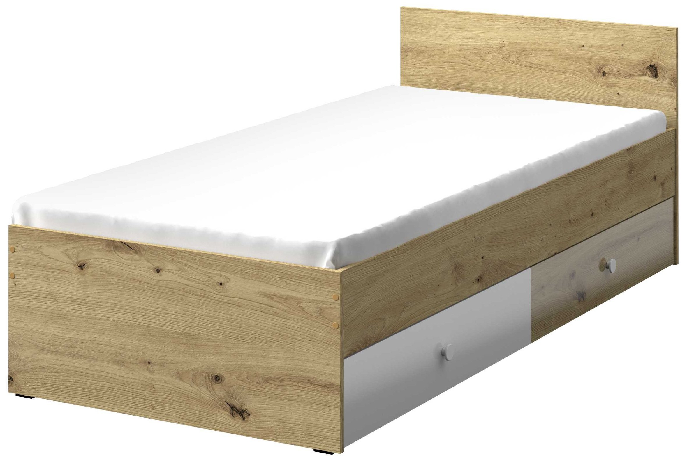 Dječji krevet Nero 14 marke Domel dizajniran je za moderan dječji ili omladinski prostor, gdje se isprepliću toplina prirodnog izgleda drveta i sjaj bijele površine. S dimenzijama 94x203,2x71 cm krevet nudi udoban ležaj veličine 90 x 200 cm, što odgovara standardnim mjerama madraca i omogućuje jednostavan odabir dodataka. Sa svojom elegantnom kombinacijom boja hrasta artisan i bijele sjajne fronte lako se uklapa u različite stilove namještaja – od klasičnog do minimalističkog.