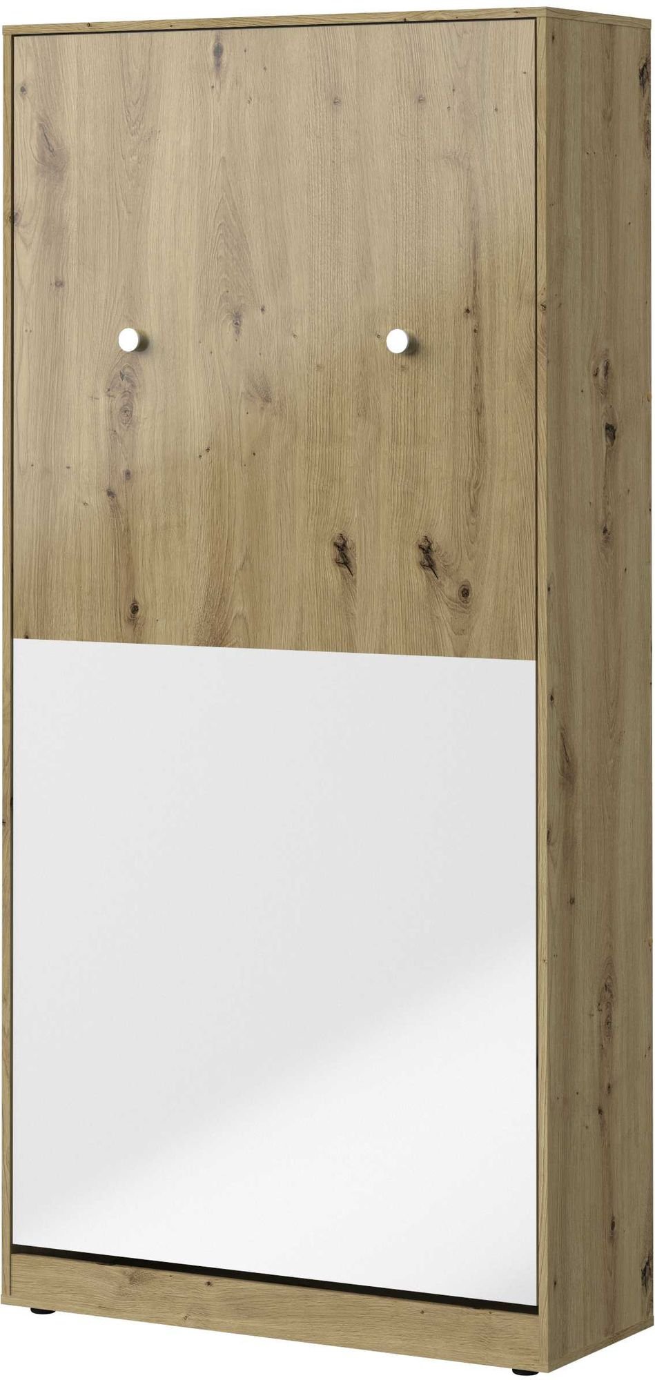 Okretni krevet u ormaru Nero 15 marke Domel spaja funkcionalnost, estetiku i praktičnost u jednom komadu namještaja. Dizajniran je za one koji žele optimalno iskoristiti prostor u manjim stanovima, garsonjerama ili sobama za goste. Kada krevet nije u upotrebi, elegantno se sklapa u ormar i tako omogućuje više prostora za dnevne aktivnosti. Visoki sjaj bijele fronte u kombinaciji s prirodnim izgledom artisan hrasta stvara svijetao, topao i moderan ambijent.