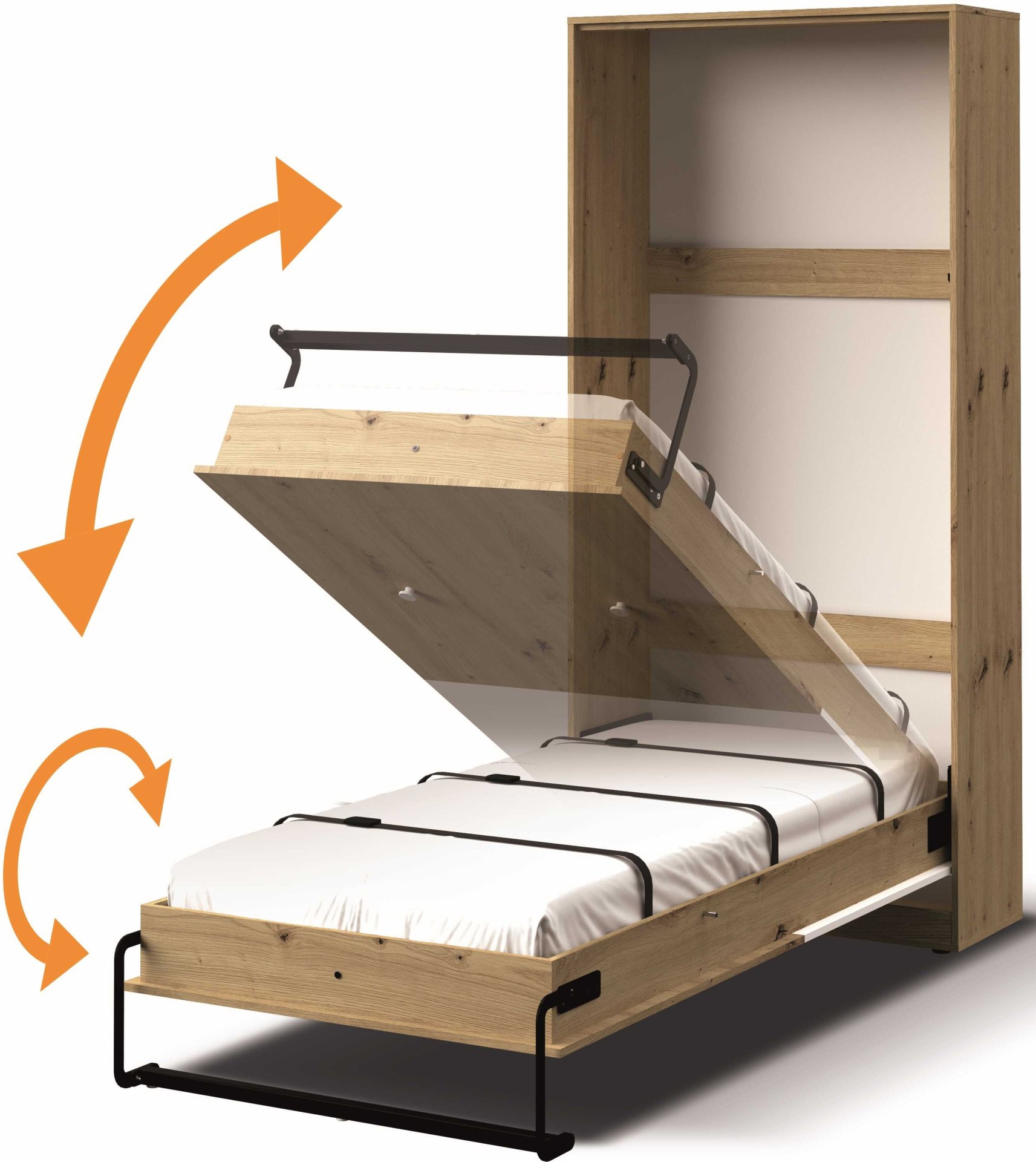 Model Nero 15 dizajniran je kao krevet u ormaru, što znači da se ležište sklapa okomito u kućište. Ovo rješenje idealno je za prostore gdje je svaki kvadratni metar dragocjen – primjerice u dječjim sobama, garsonjerama, uredima ili apartmanima. Budući da nema dodatnu ladicu za posteljinu, konstrukcija ostaje lagana i jednostavna za upotrebu. Krevet je prikladan za svakodnevno spavanje ili povremeni smještaj gostiju, ovisno o odabranom madracu.