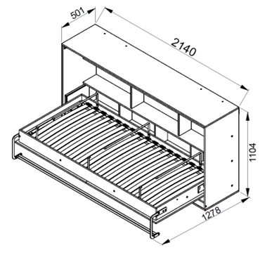 Mjere proizvoda iznose 214x50,1x110,4 cm, što omogućuje udoban ležaj s površinom 90x200 cm, a istovremeno krevet u sklopljenom stanju zauzima minimalno prostora. To je idealno rješenje za prostore koji istodobno služe više funkcija – primjerice dnevni boravak, radnu sobu ili sobu za goste. Kada se krevet sklopi, pretvara se u elegantan ormar koji se stapa s ostatkom namještaja u prostoru.