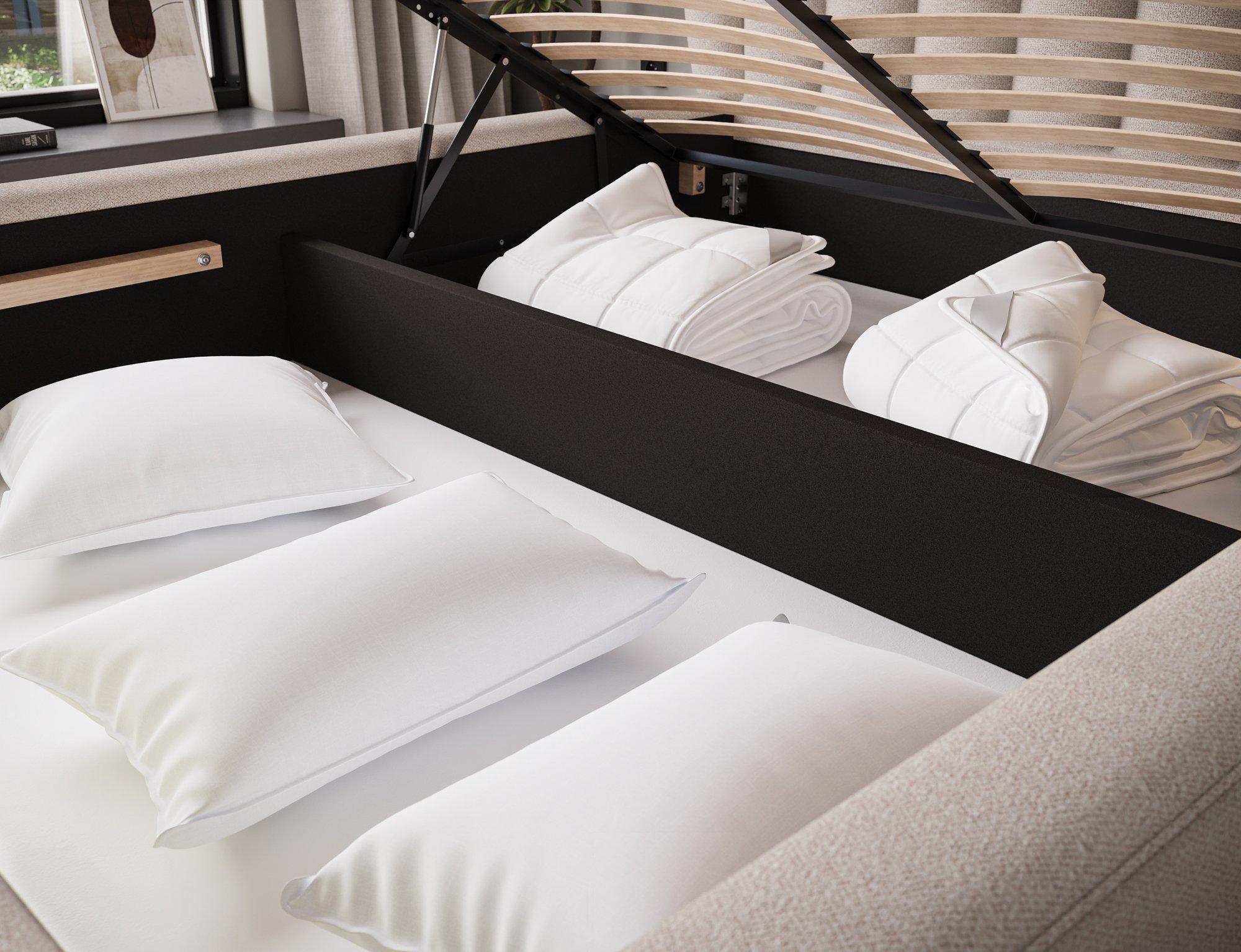 Podizni krevet Tapedo poljskog proizvođača Eltap predstavlja suvremenu kombinaciju udobnosti, funkcionalnosti i estetskog izgleda. Izrađen je od kvalitetnog drva i presvučen odabranom tkaninom, što mu daje ugodan, mekan izgled te osjećaj topline u spavaćem prostoru. Krevet je opremljen pouzdanim podiznim mehanizmom koji omogućuje jednostavan pristup prostranoj ladici za posteljinu, zbog čega je prikladan za sve koji žele u spavaćoj sobi održavati red i iskoristiti svaki centimetar prostora.