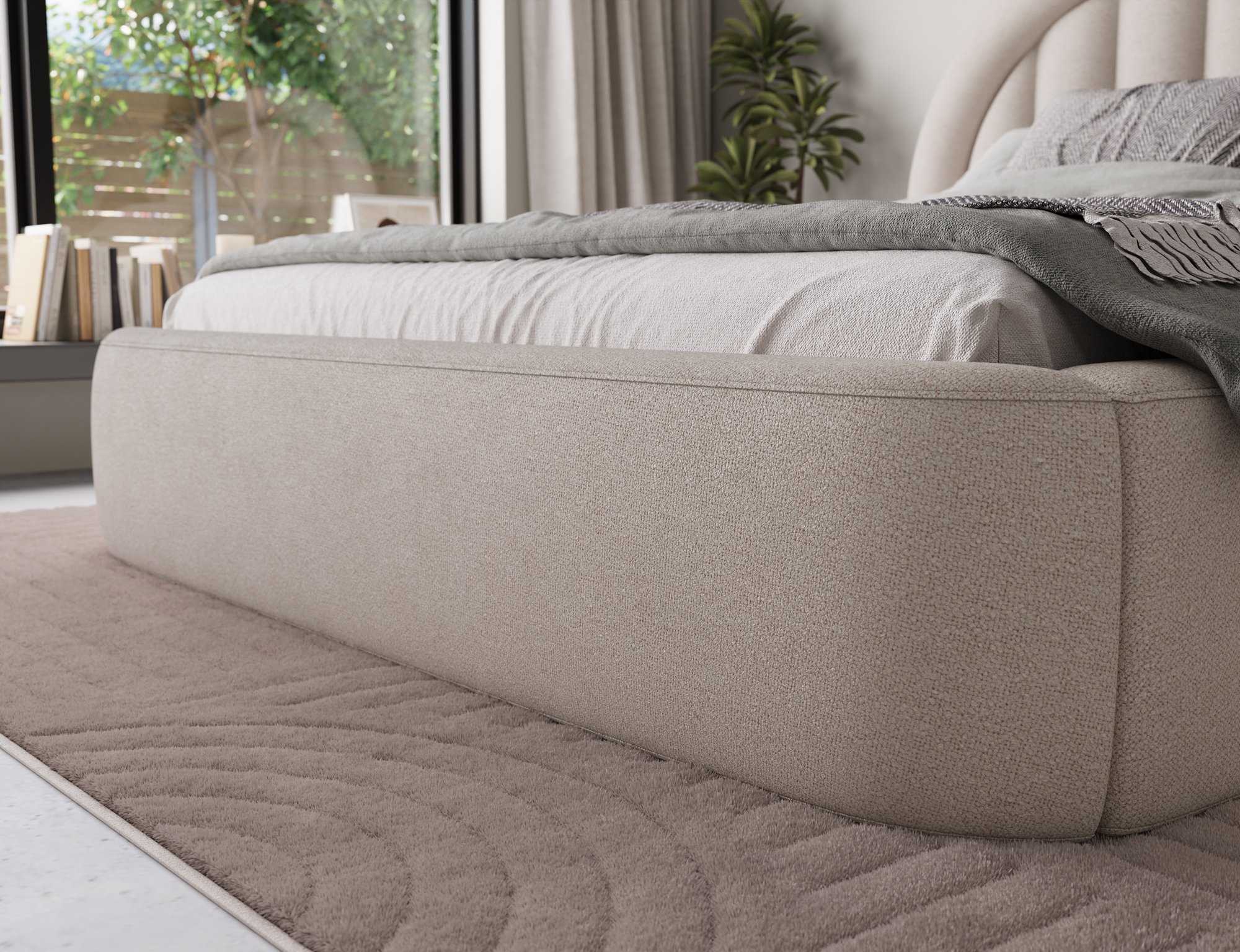 Čvrsta konstrukcija izrađena je od drvenog okvira, pri čemu je korištena borovina kao osnovni materijal okvira. Tapecirani okvir presvučen je mekom tkaninom, prikazanom na fotografiji u nijansi Xillar 18. Ispuna uzglavlja sastoji se od kvalitetne poliuretanske pjene T2130, koja osigurava udoban naslon tijekom čitanja ili odmora. Takva kombinacija materijala povećava stabilnost i trajnost proizvoda te omogućuje dugotrajnu upotrebu bez gubitka udobnosti.
