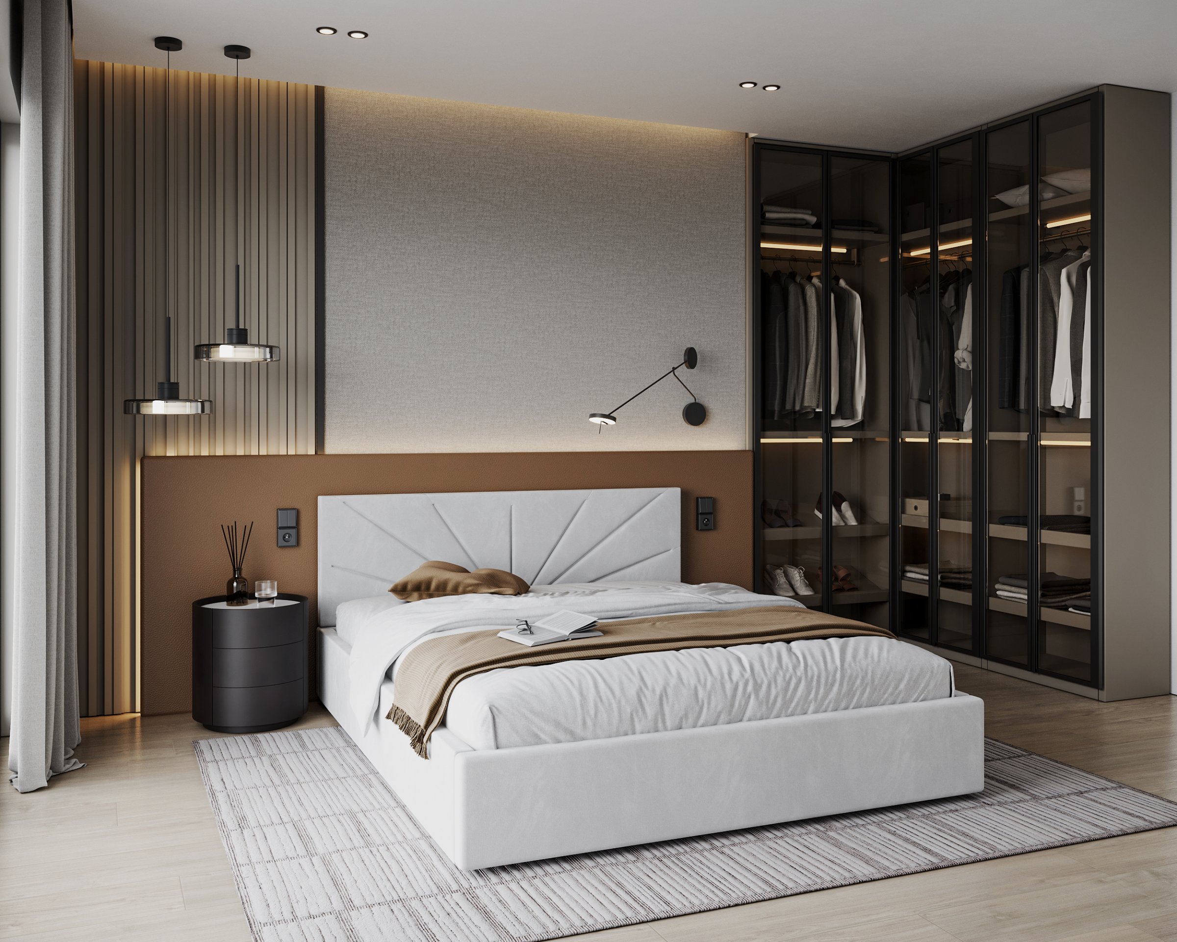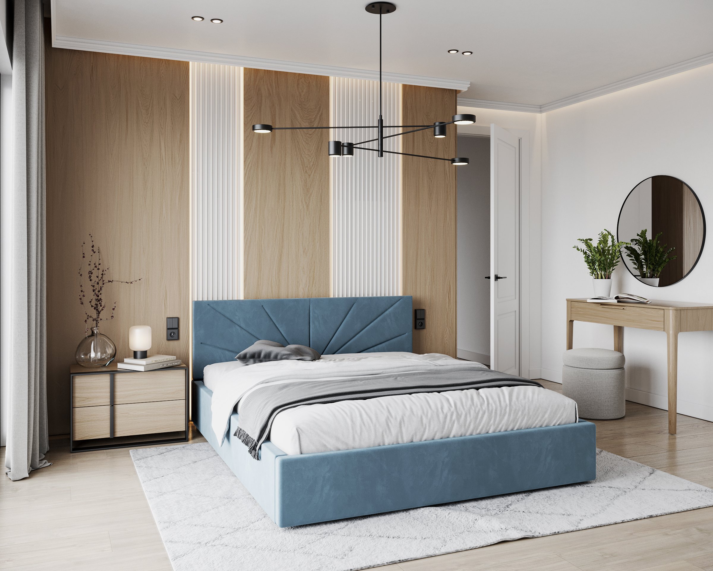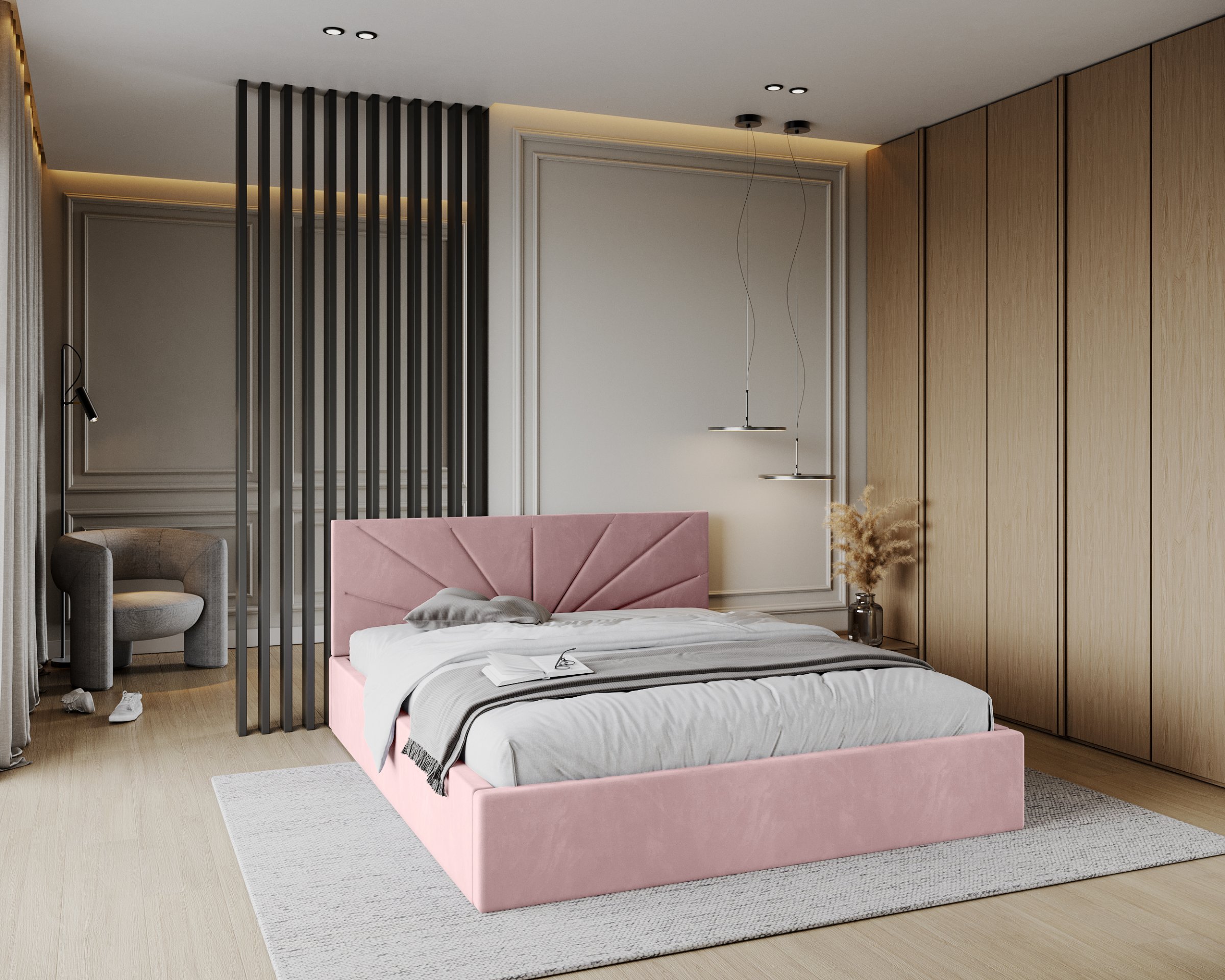 Krevet Georgia dostupan je u više boja i tkanina, pa ga možete potpuno prilagoditi svom interijeru. Tapecirani okvir omogućuje izbor između mekših ili strukturiranijih tekstilnih površina koje će se lijepo uklopiti s ostatkom namještaja u spavaćoj sobi. Vodoravno prošiveno uzglavlje dodaje dašak suvremene elegancije, a istovremeno stvara osjećaj domaćeg ugođaja i topline. Zbog svog univerzalnog oblika lijepo se uklapa i u moderne minimalističke interijere, ali i u rustikalne ili skandinavske stilove.
