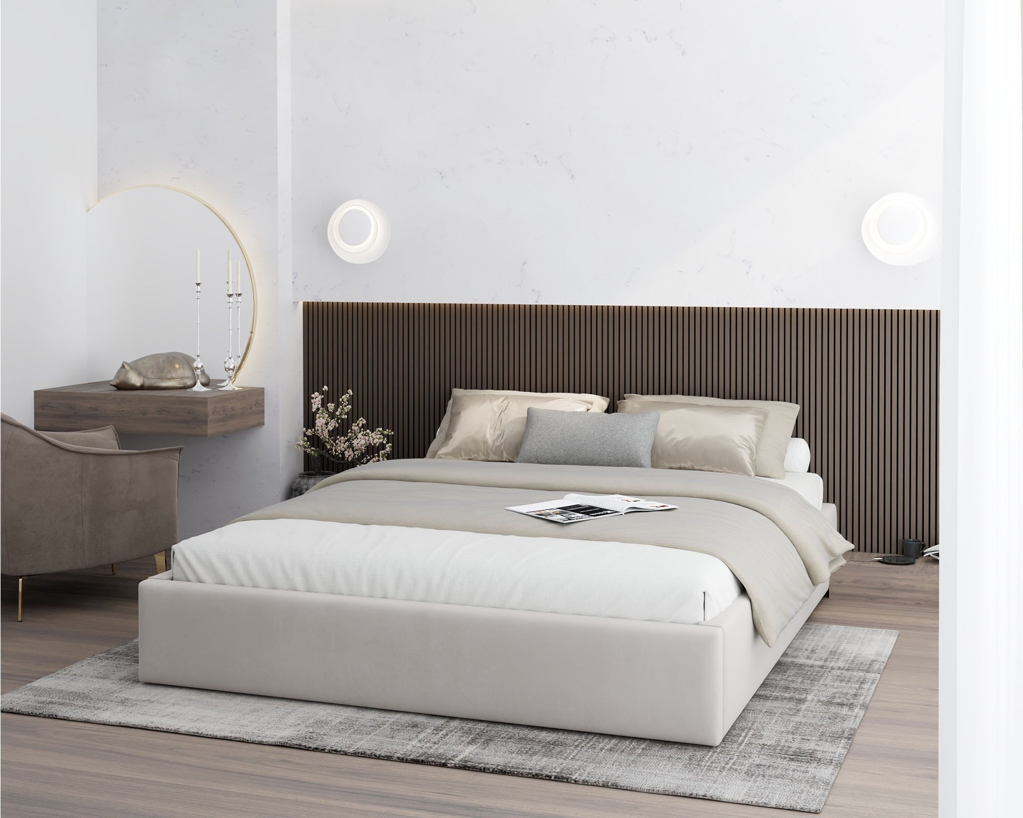 Model bez uzglavlja omogućuje potpunu slobodu pri oblikovanju prostora. Takav dizajn popularan je među onima koji žele minimalistički izgled ili traže rješenje koje se prilagođava različitim stilovima interijera. Krevet možete jednostavno kombinirati s tapetama, drvenim oblogama ili tapeciranim panelima koje odaberete po vlastitom ukusu. Time stvarate jedinstven ambijent koji odražava vaš osobni stil.
