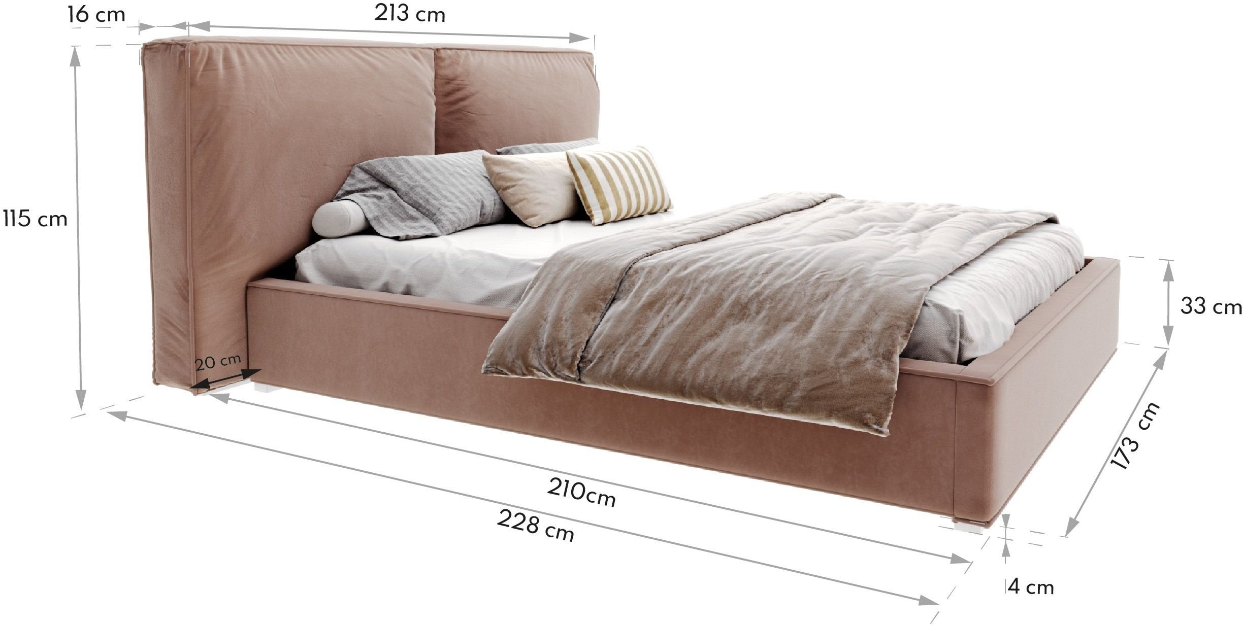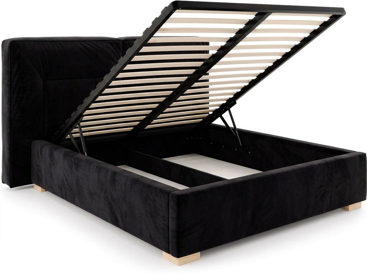 Model Bristol dizajniran je s mišlju na praktičnost. Ugrađeni podizni mehanizam od čelika omogućuje jednostavan pristup velikoj ladici za posteljinu, koja nudi volumen do otprilike 720 litara. To znači da ispod ležišta možete bez problema pohraniti deke, jastuke ili sezonsku posteljinu, a da pritom ne izgubite estetsku čistoću spavaće sobe. Metalni okvir s jakim mehanizmom osigurava stabilnost i omogućuje podizanje ležišta s opterećenjem do 400 kg, što svjedoči o kvaliteti korištenih materijala.