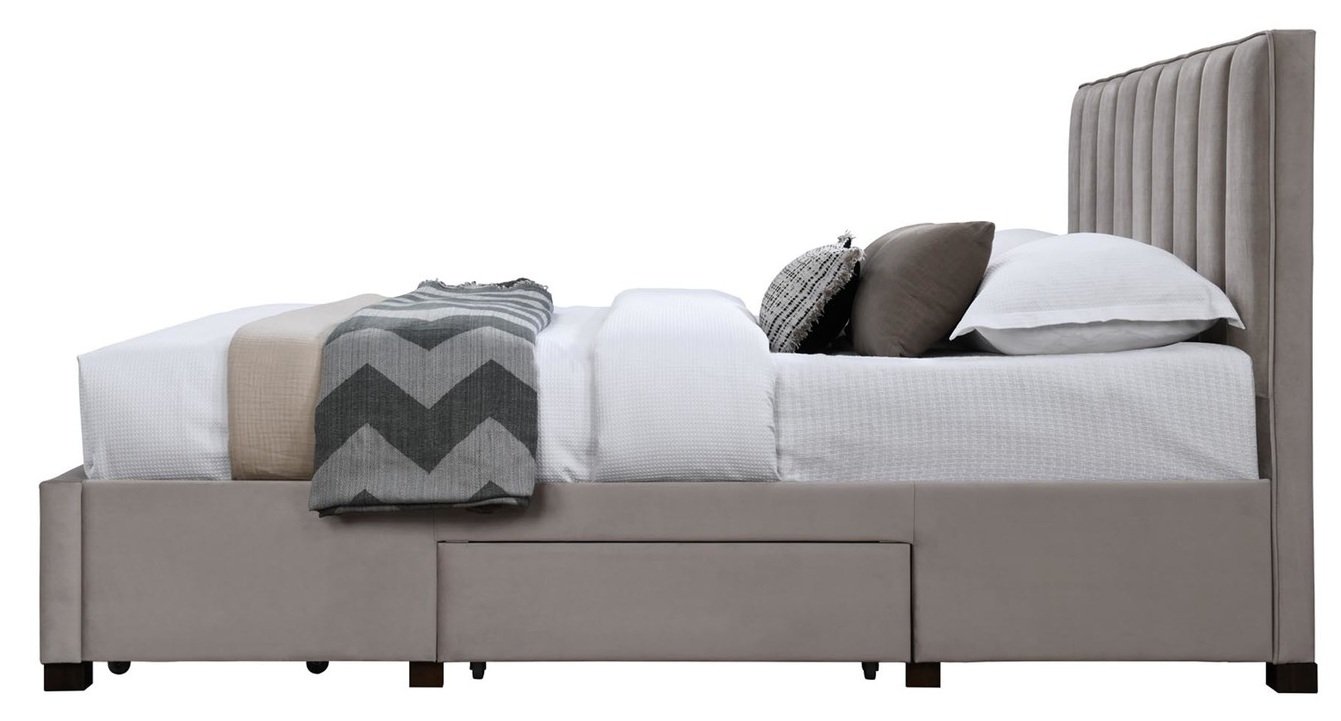 Krevet Grace – Halmar spaja estetiku, kvalitetu i funkcionalnost u jednom proizvodu. Njegov suvremeni izgled nadopunjuje osjećaj domaćeg ugođaja, dok promišljeni detalji, poput meke tkanine i integriranih ladica, osiguravaju praktičnost u svakodnevnom životu. Bež nijansa naglašava toplinu prostora i omogućuje bezvremensku eleganciju, koja se lijepo slaže s drvom, metalom ili drugim materijalima u spavaćoj sobi.