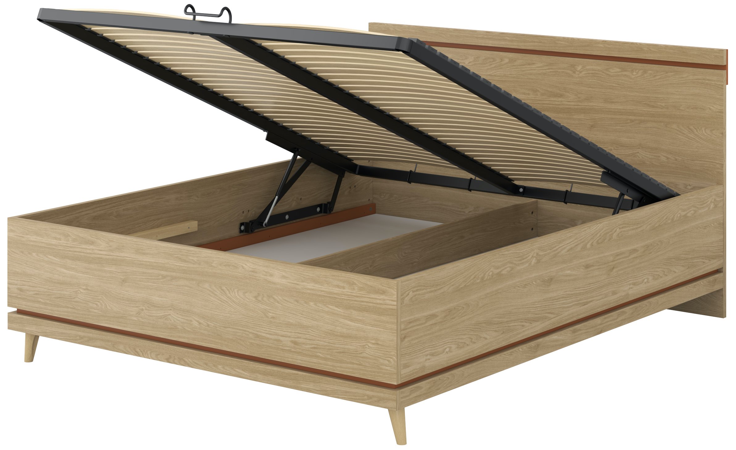 Uživajte u savršenom spoju modernog dizajna, topline prirodnih tonova i pametne funkcionalnosti koju pruža krevet s podiznim mehanizmom dimenzija 160x200 cm u prekrasnoj kombinaciji boja nauljeni hrast i nauljeni hrast-cigla. Ovaj elegantni komad namještaja, proizveden u renomiranoj tvornici Helvetia Meble u Poljskoj, predstavlja spoj vrhunske izrade, praktičnih rješenja i estetske privlačnosti koja se skladno uklapa u svaki moderan ili klasičan interijer.