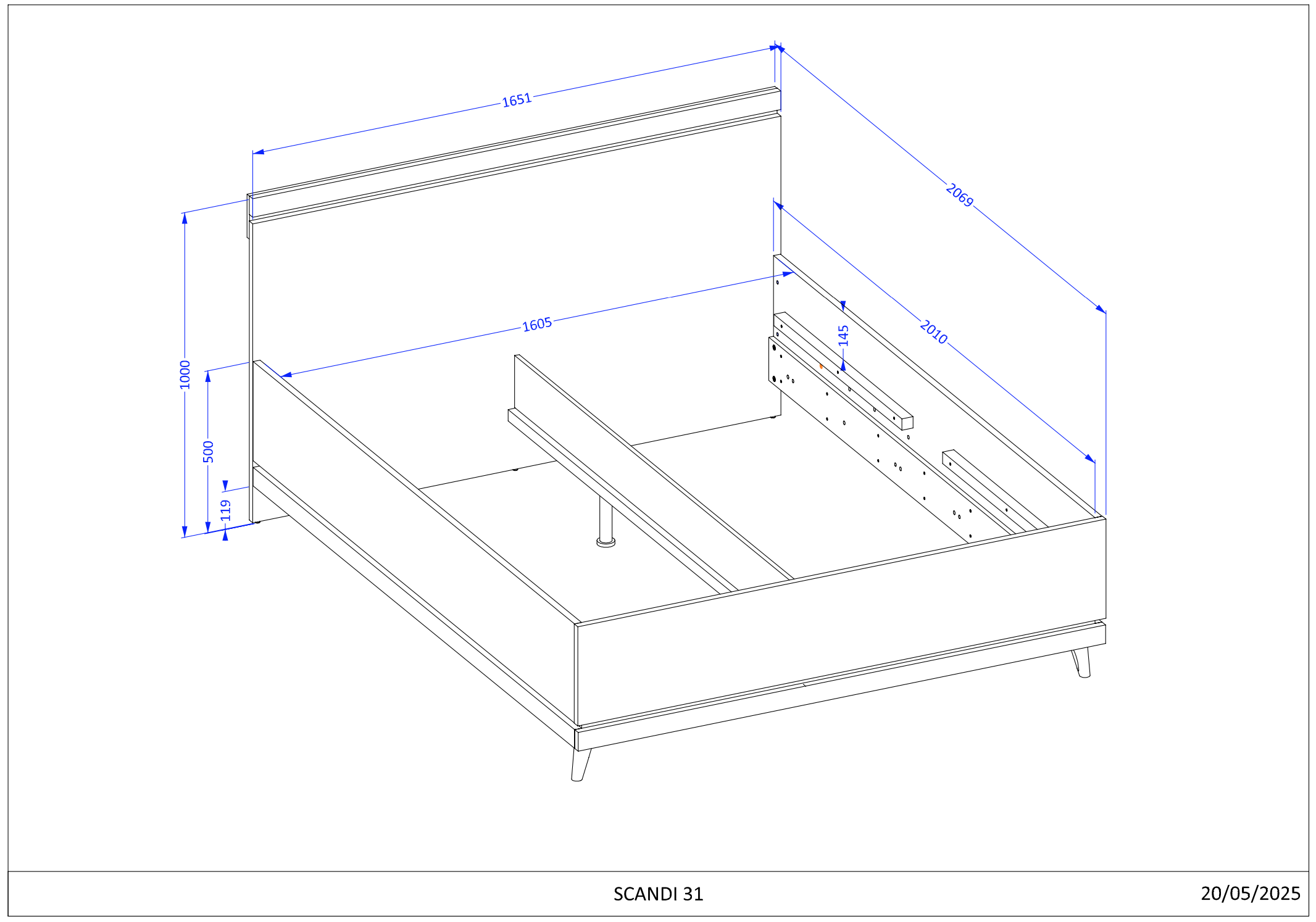 Okvir kreveta izrađen je od visokokvalitetne iverice debljine 15 mm i 22 mm, što jamči stabilnost i dugotrajnost. ABS rubovi dodatno štite površinu od oštećenja i trošenja, pa će krevet zadržati besprijekoran izgled i nakon višegodišnjeg korištenja. Minimalističke plastične nogice osiguravaju čvrstoću, a ujedno naglašavaju čiste linije skandinavskog dizajna koji odiše jednostavnošću i funkcionalnošću.