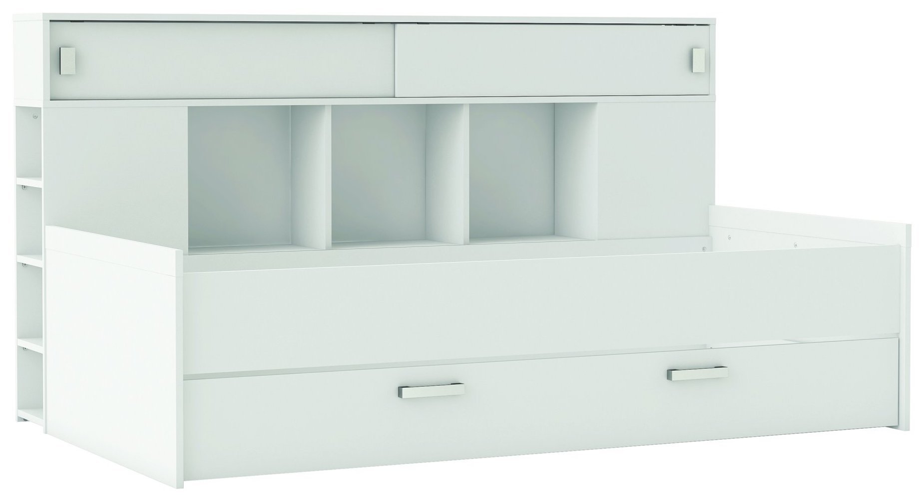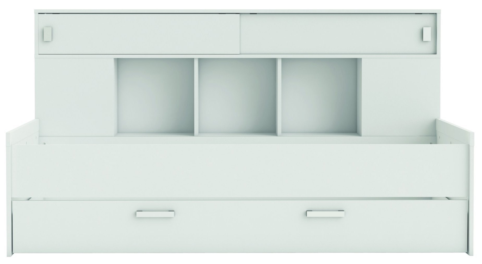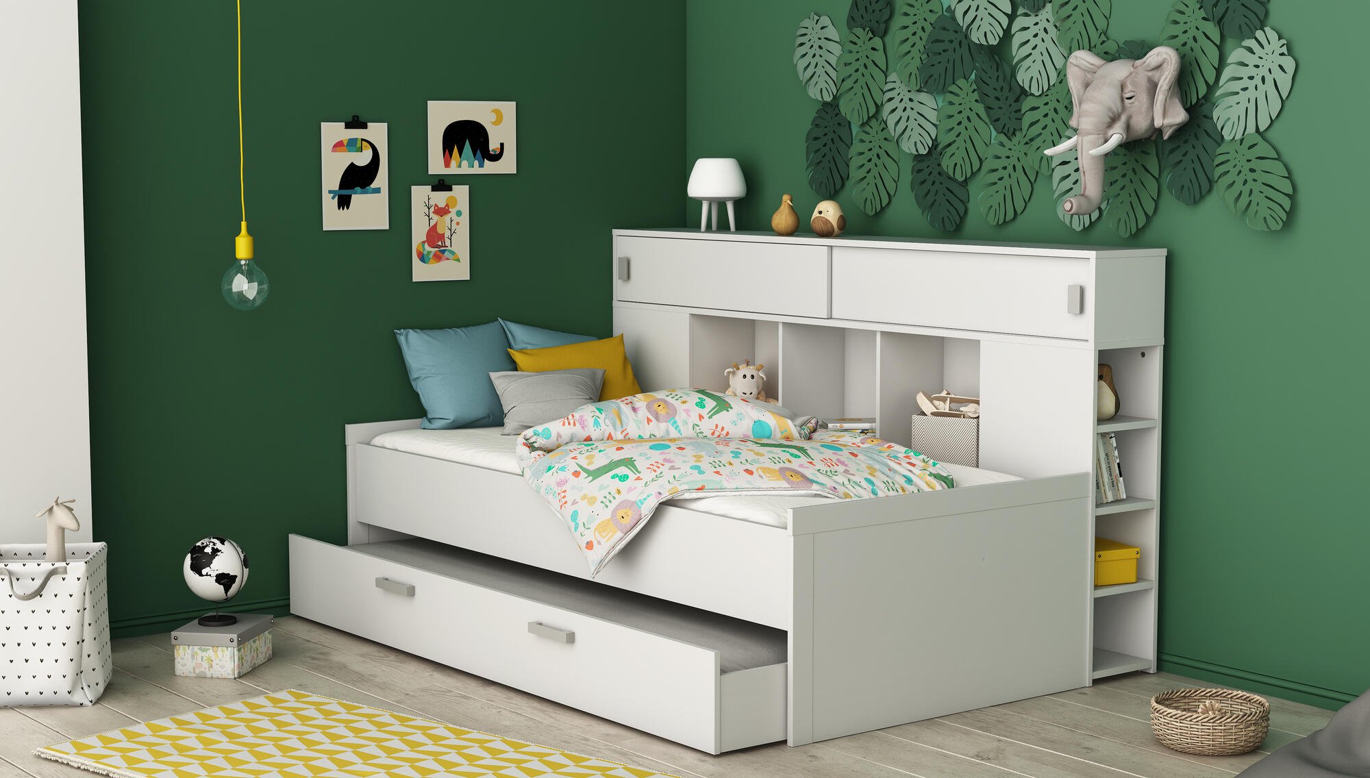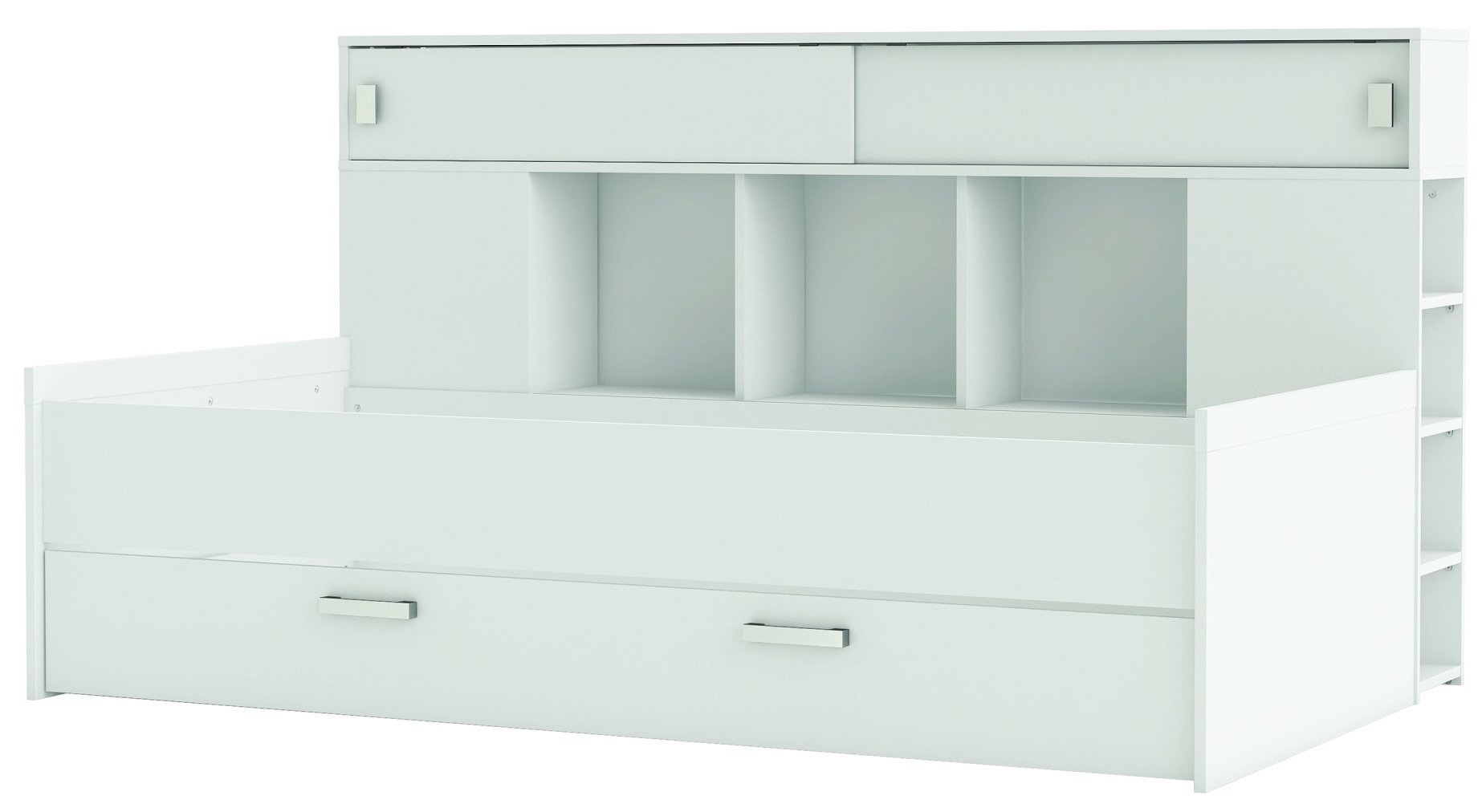 Bijela boja i neutralan oblik omogućuju jednostavno kombiniranje s namještajem različitih stilova i boja. Krevet se odlično slaže s drvenim ili obojenim ormarima, policama i dekorativnim dodacima. Zbog jednostavnih linija i praktičnog dizajna prikladan je i za dječje i za omladinske sobe. Prostor koji nude dodatne police i ladice doprinosi većoj organiziranosti i udobnosti u svakodnevnom životu.