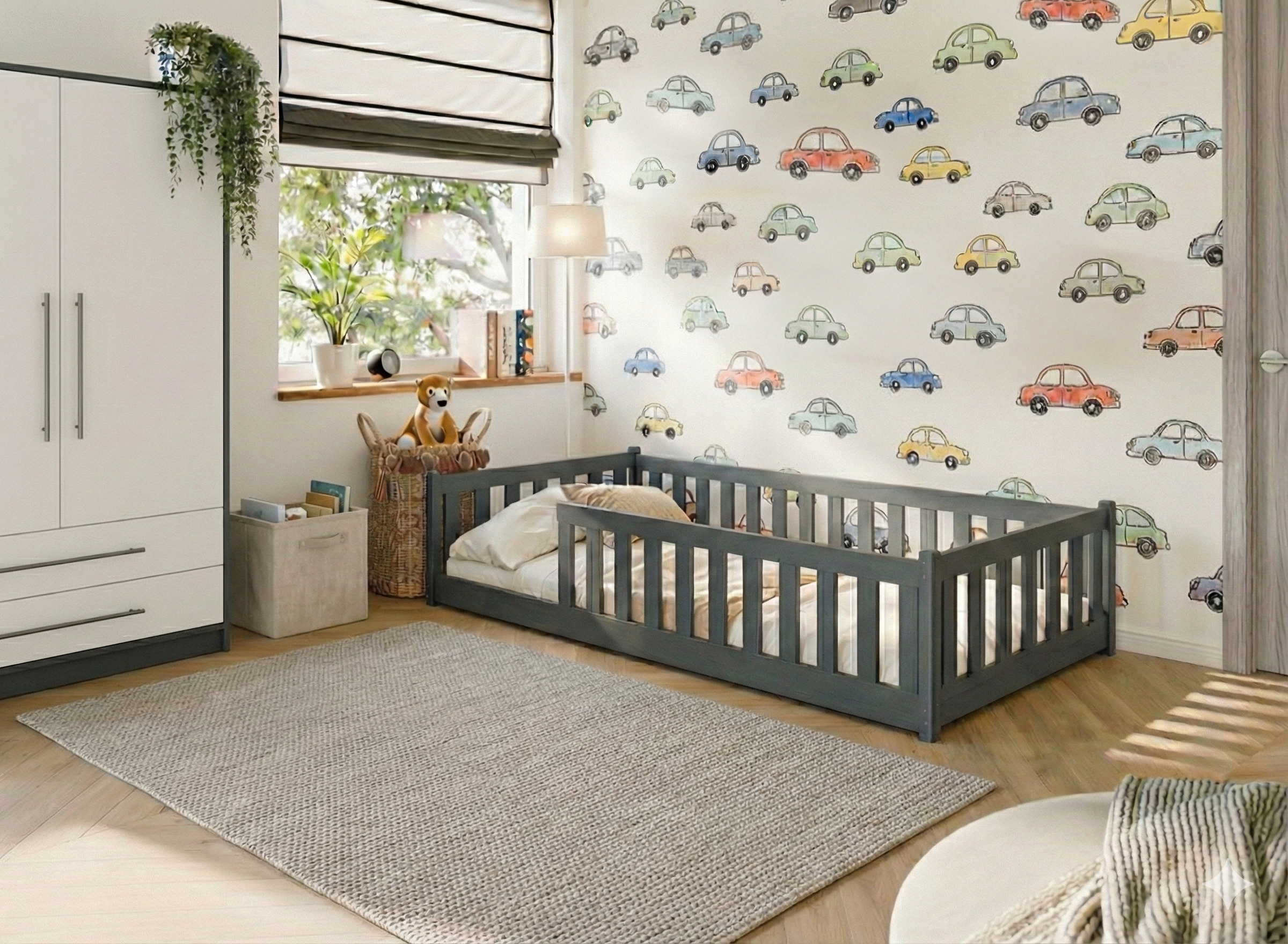 Grafitna nijansa kreveta Bella moderna je i neutralna, pa se lijepo uklapa s širokom paletom boja u dječjoj sobi. Možete je kombinirati s živopisnim pastelnim tonovima ili prirodnim materijalima poput pamuka, vune i lana. Površina je glatka i jednostavna za čišćenje – dovoljno je samo lagano vlažna krpa, bez agresivnih sredstava za čišćenje. Zahvaljujući minimalističkom dizajnu, krevet djeluje bezvremenski i vizualno se prilagođava rastu djeteta te promjenama u unutarnjem uređenju.