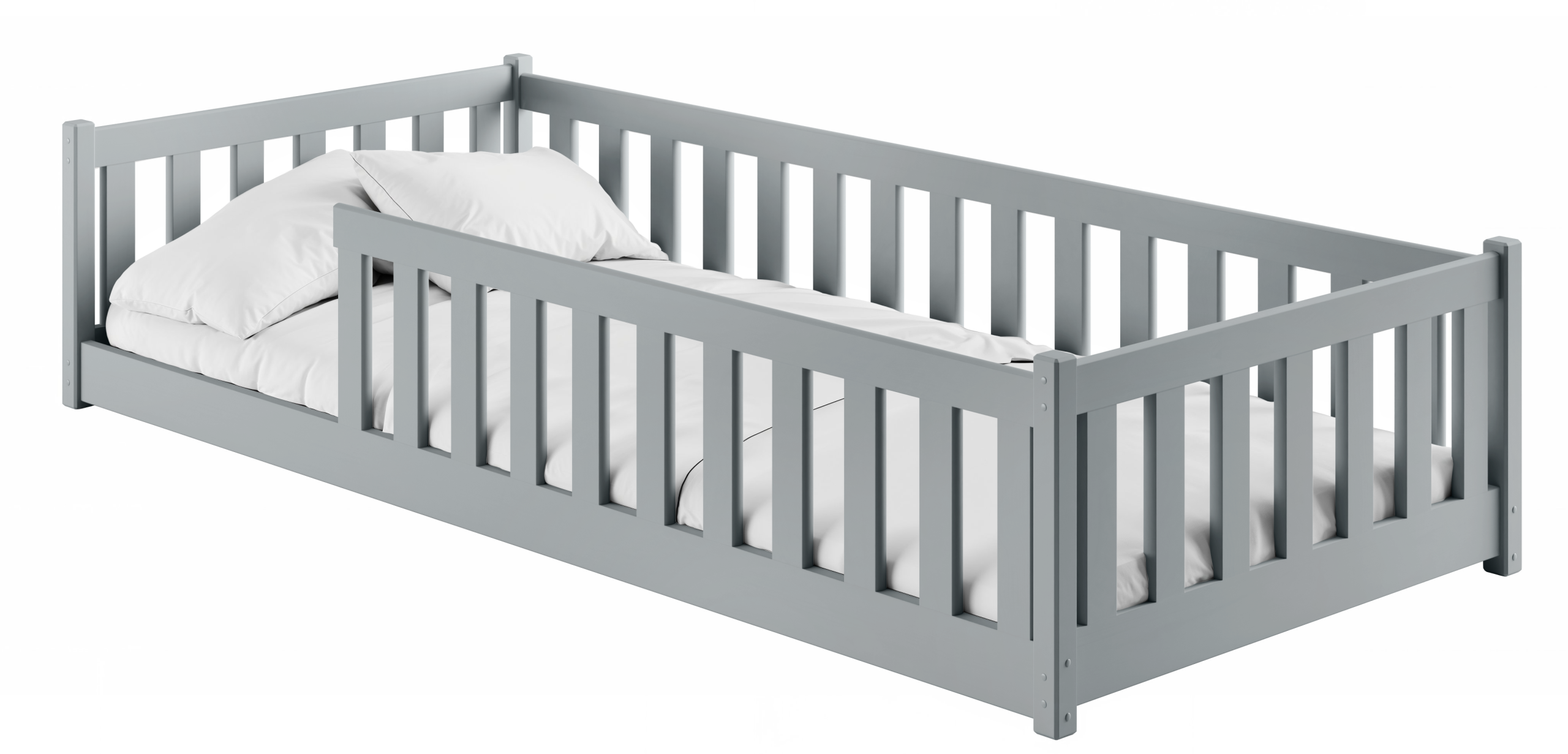 Siva boja kreveta Bella stvara osjećaj mira i urednosti. Univerzalan je izbor koji se odlično nadopunjuje s drugim bojama – od pastelnih tonova do živopisnijih nijansi. Osim toga, siva je praktična za održavanje, jer su manje vidljive sitne mrlje i ogrebotine koje se mogu pojaviti pri dječjoj upotrebi.
