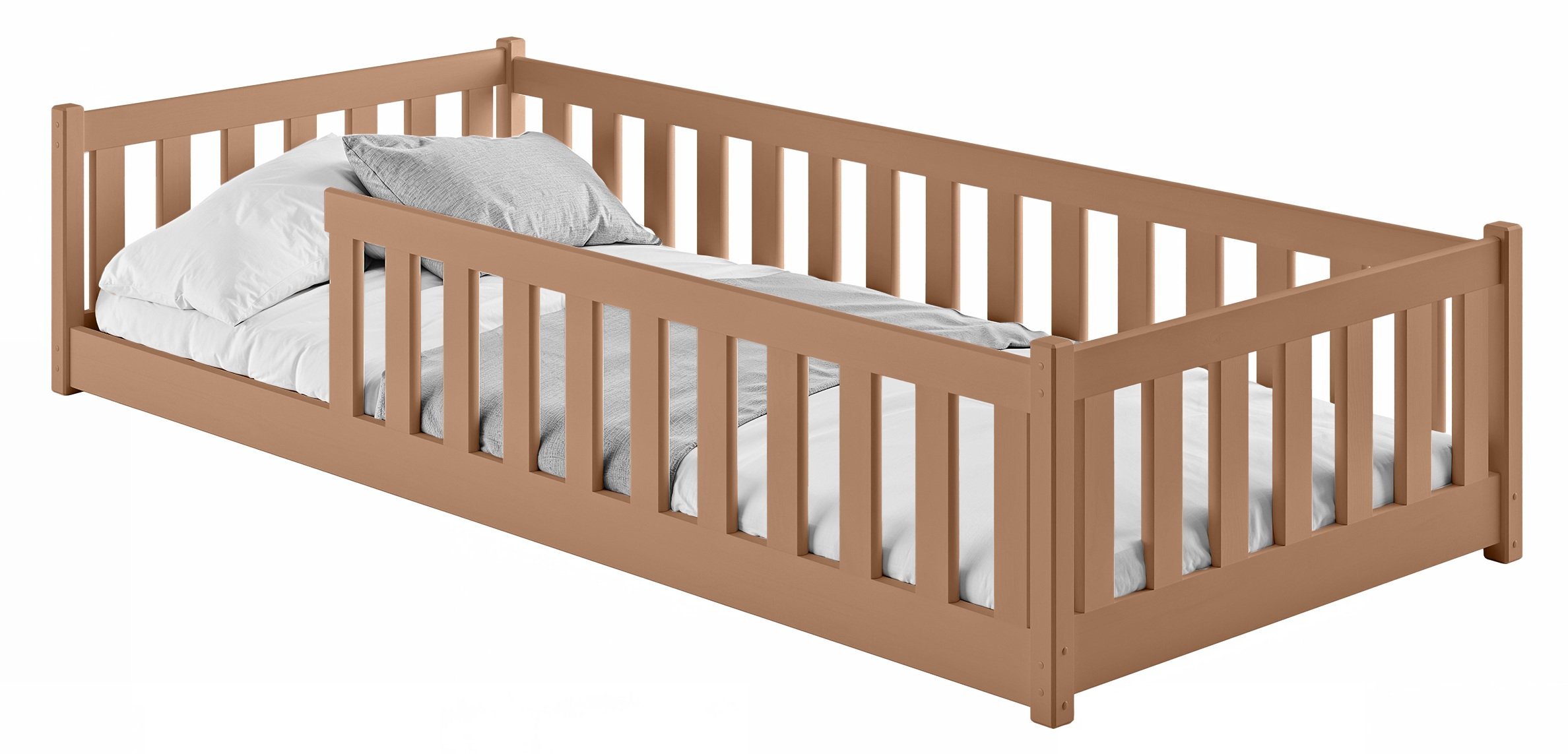 Dječji krevet Bella – Lano dizajniran je s mišlju na ugodan i siguran san vašeg djeteta. Izrađen je od kvalitetnog borovog drva, koje osigurava čvrstoću i dug vijek trajanja namještaja. Topla cimetova boja naglašava prirodnu teksturu drva te prostoru daje osjećaj domaćnosti i udobnosti. Ležište veličine 80x180 cm prikladno je za dječju sobu, gdje se isprepliću funkcionalnost i estetika. Krevet je opremljen fiksnom pregradom koja osigurava sigurnost tijekom spavanja i sprječava moguće padove. Madrac nije uključen, što omogućuje da odaberete ležište prema potrebama vašeg djeteta.