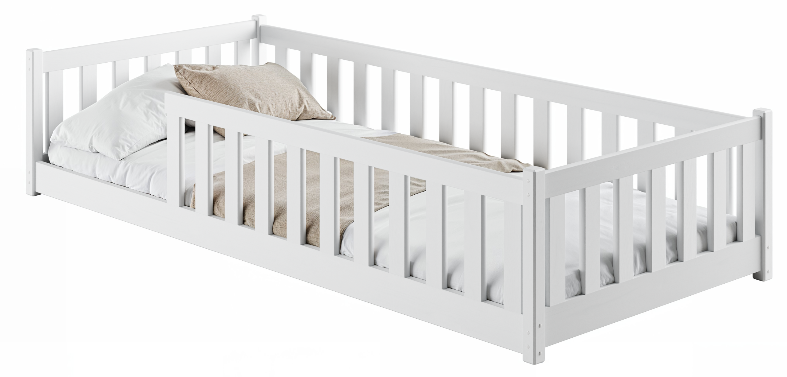 Krevet je u potpunosti izrađen od borovog drva, prirodnog materijala poznatog po svojoj otpornosti, lakoći i ugodnoj strukturi. Drvena konstrukcija stvara toplo i domaće ozračje, a ujedno osigurava stabilnost cijelog okvira. Površina je obrađena bijelom bojom koja štiti drvo od trošenja te olakšava čišćenje. Bijela boja se lijepo slaže s drugim nijansama boja u dječjoj sobi i omogućuje da krevet ostane aktualan i kada dijete raste, a prostor se postupno mijenja.