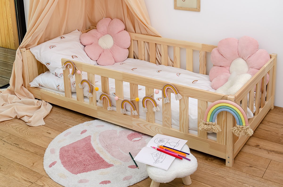 Dječji krevet Bella – Lano izrađen je od kvalitetnog borovog drva, koje donosi ugodan dojam prirode u dječju sobu. Njegov dizajn spaja čvrstoću, sigurnost i jednostavan, a istovremeno elegantan izgled, koji se lijepo uklapa u različite stilove unutarnjeg uređenja. Ležajna površina veličine 90x190 cm nudi dovoljno prostora za udoban san i opuštenu igru, a zbog kompaktnih vanjskih dimenzija 97x198x45 cm krevet se lako uklapa i u manje prostore.