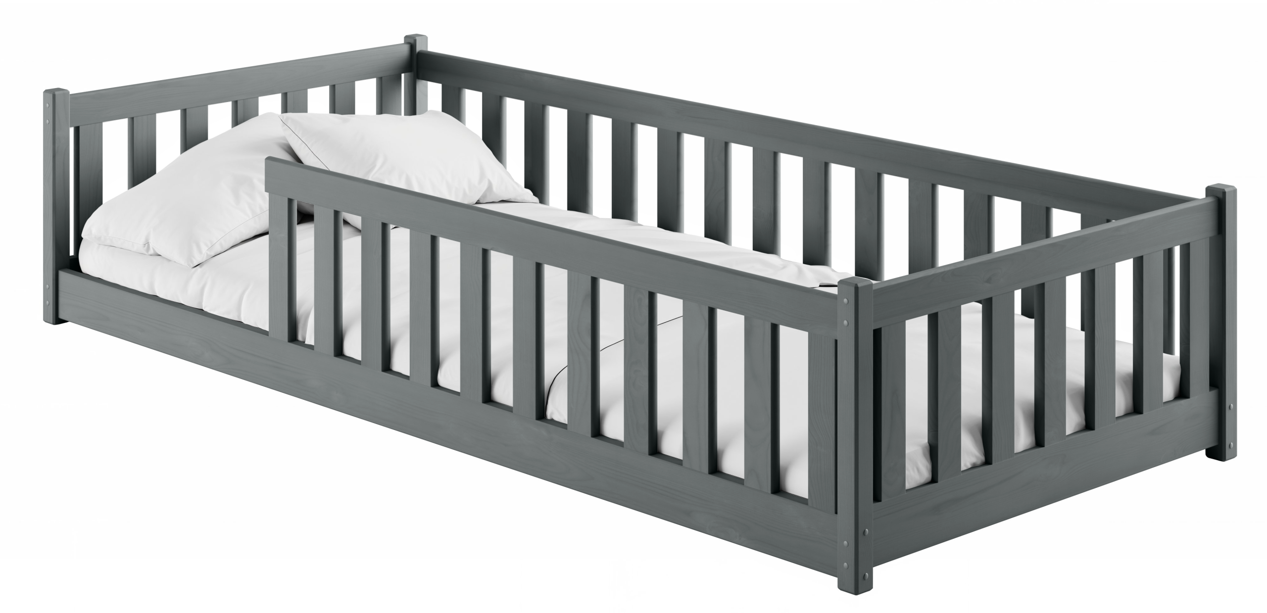 Dječji krevet Bella u boji grafit je kvalitetan i izdržljiv komad namještaja, izrađen od prirodnog borovog drva. Radi se o krevetu koji spaja funkcionalnost, sigurnost i estetsku privlačnost, stoga je odličan izbor za dječju ili omladinsku sobu. S ležištem veličine 90x200 cm i ukupnim dimenzijama 97x208x45 cm nudi dovoljno prostora za udoban san, a istovremeno zauzima relativno malo prostora u prostoriji.