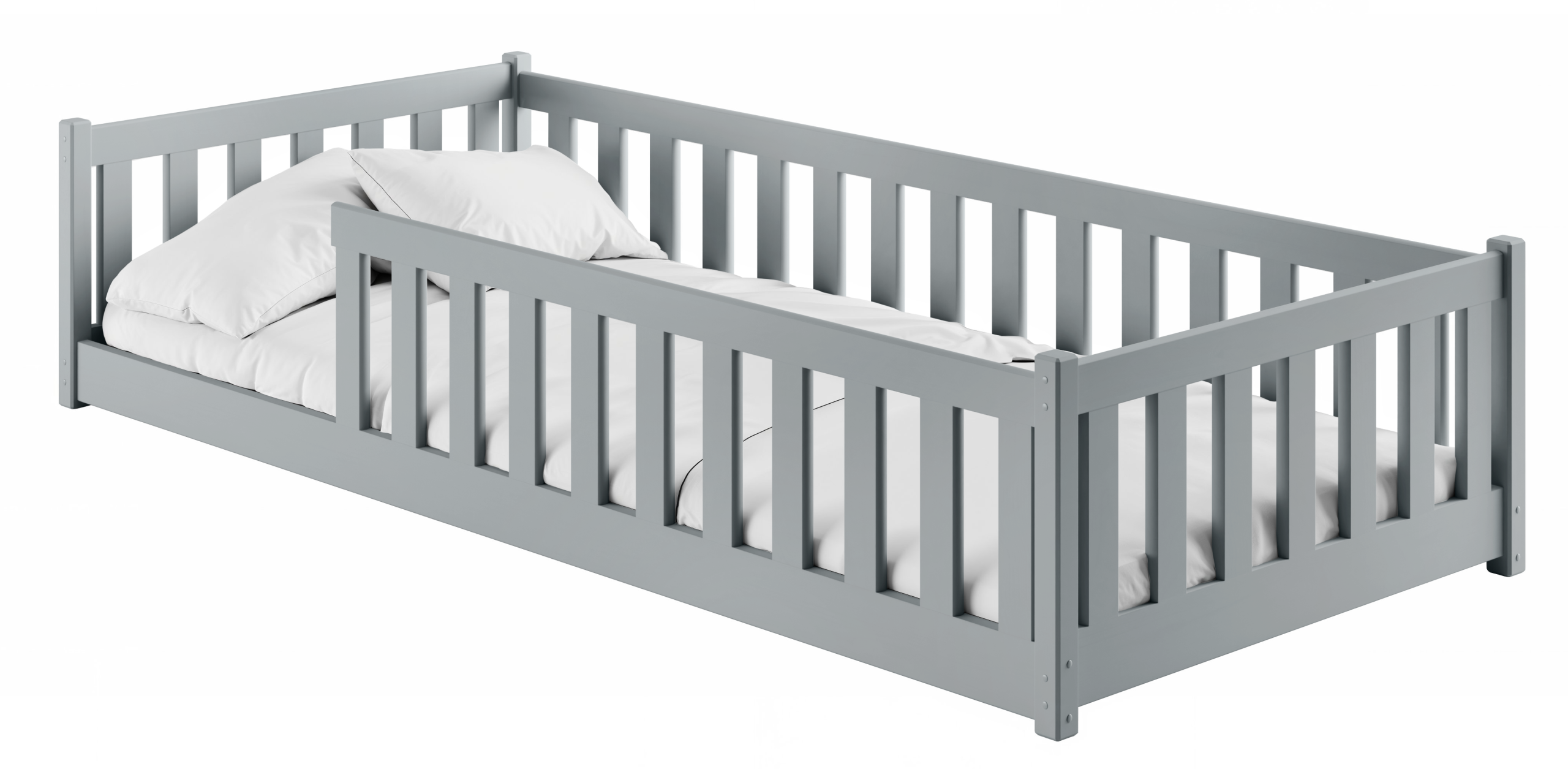 Dječji krevet Bella – Lano dizajniran je za roditelje koji traže čvrsto, sigurno i estetsko rješenje za sobu svog djeteta. Izrađen je od kvalitetnog borovog drva, koje osigurava stabilnost i dug vijek trajanja, a istovremeno svojom prirodnom teksturom i obojenom površinom u sivoj boji donosi smirujući, moderan izgled u svaki dječji prostor. Krevet je prikladan za standardni madrac veličine 90x200 cm i ima nosivost do 100 kg, što znači da će služiti djetetu dugi niz godina – od ranog djetinjstva pa sve do tinejdžerskog razdoblja.