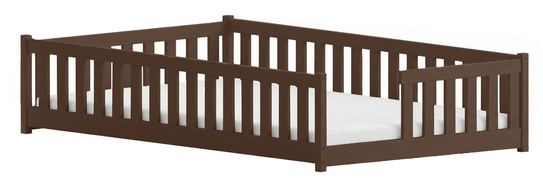 Tamno čokoladna boja daje krevetu klasičan izgled koji se lijepo slaže s različitim kolorističkim kombinacijama namještaja i tekstila. Može se kombinirati sa svijetlim ili pastelnim zidovima, što stvara ugodan kontrast. Zbog prirodnog izgleda drveta, krevet se lijepo uklapa i u rustikalne i u suvremene interijere. Dizajn bez oštrih rubova i fiksna pregrada pridonose osjećaju sigurnosti i udobnosti.