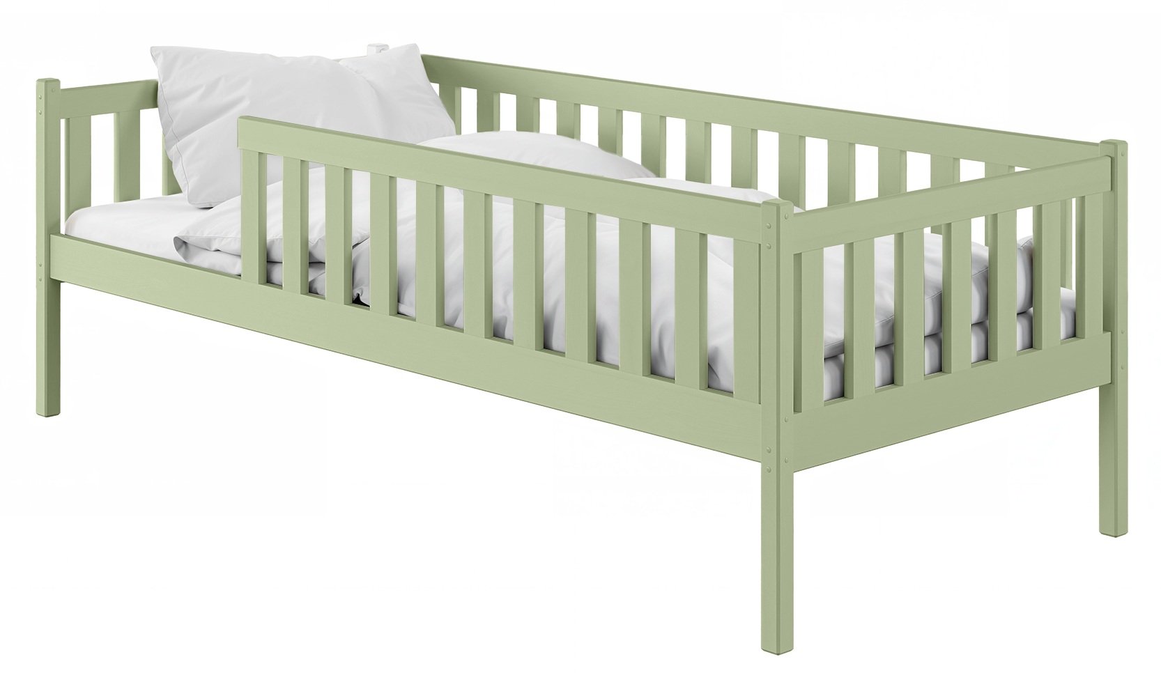 Dimenzije 80x180 cm predstavljaju optimalno rješenje za dječje sobe gdje je prostor često ograničen. Krevet ne uključuje ladicu za posteljinu, što održava njegovu vizualnu lakoću i omogućuje više prostora ispod ležišta za pohranu po vlastitom izboru. Zbog neutralnog maslinastog tona lijepo se kombinira s različitim bojama zidova, tekstila i ostalog namještaja.