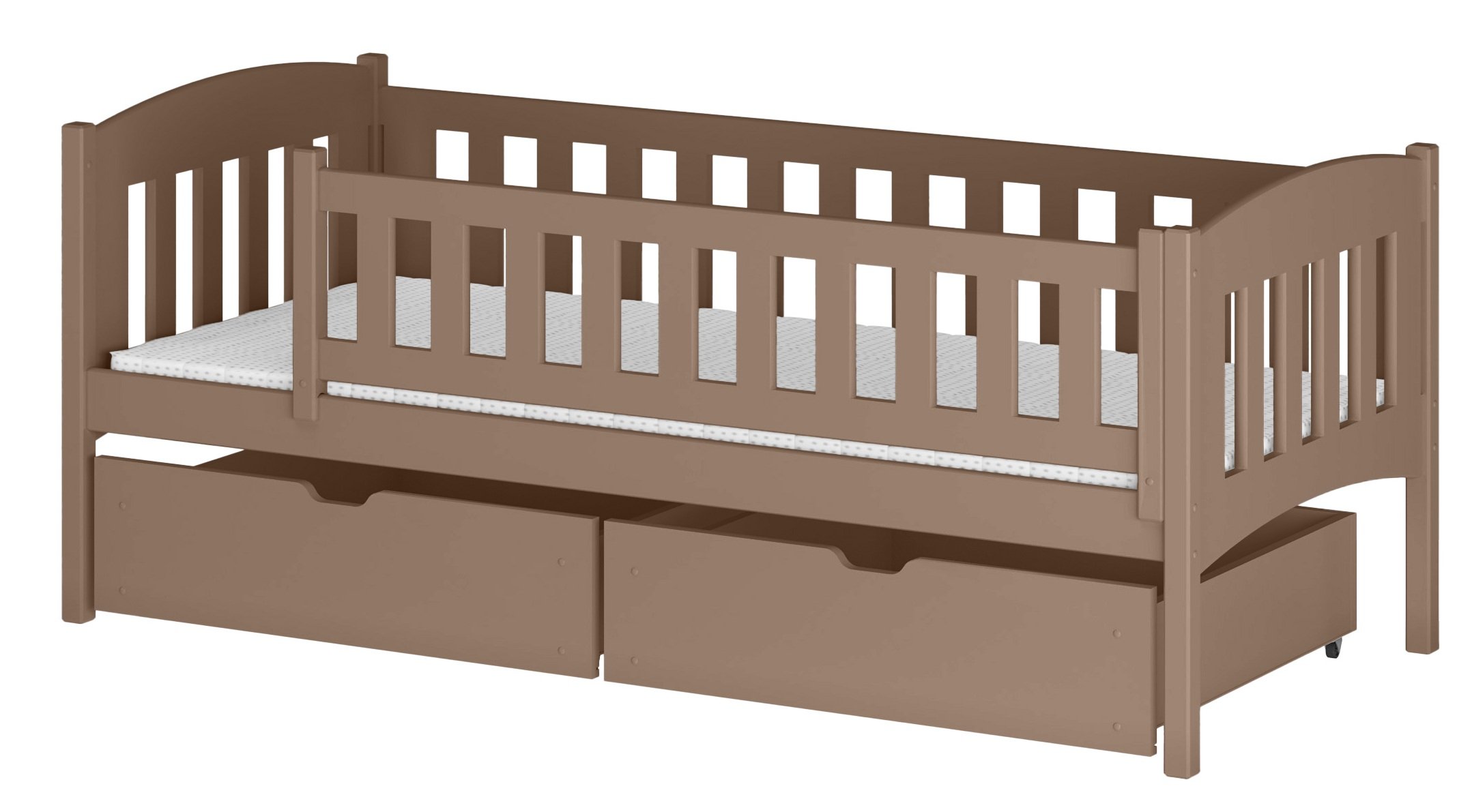 Proizvod spaja kvalitetnu izradu, estetsku privlačnost i funkcionalnost. Borovo drvo donosi prirodnu ljepotu i toplinu, a boja mliječne čokolade dodaje moderan dojam. Ladica ispod ležišta nudi praktično rješenje za pohranu, a letvičasto dno podržava zdrav san djeteta. Budući da je proizvod izrađen u Poljskoj u tvornici Lano, poznatoj po preciznoj obradi drva, zajamčena je visoka razina kvalitete i trajnosti.