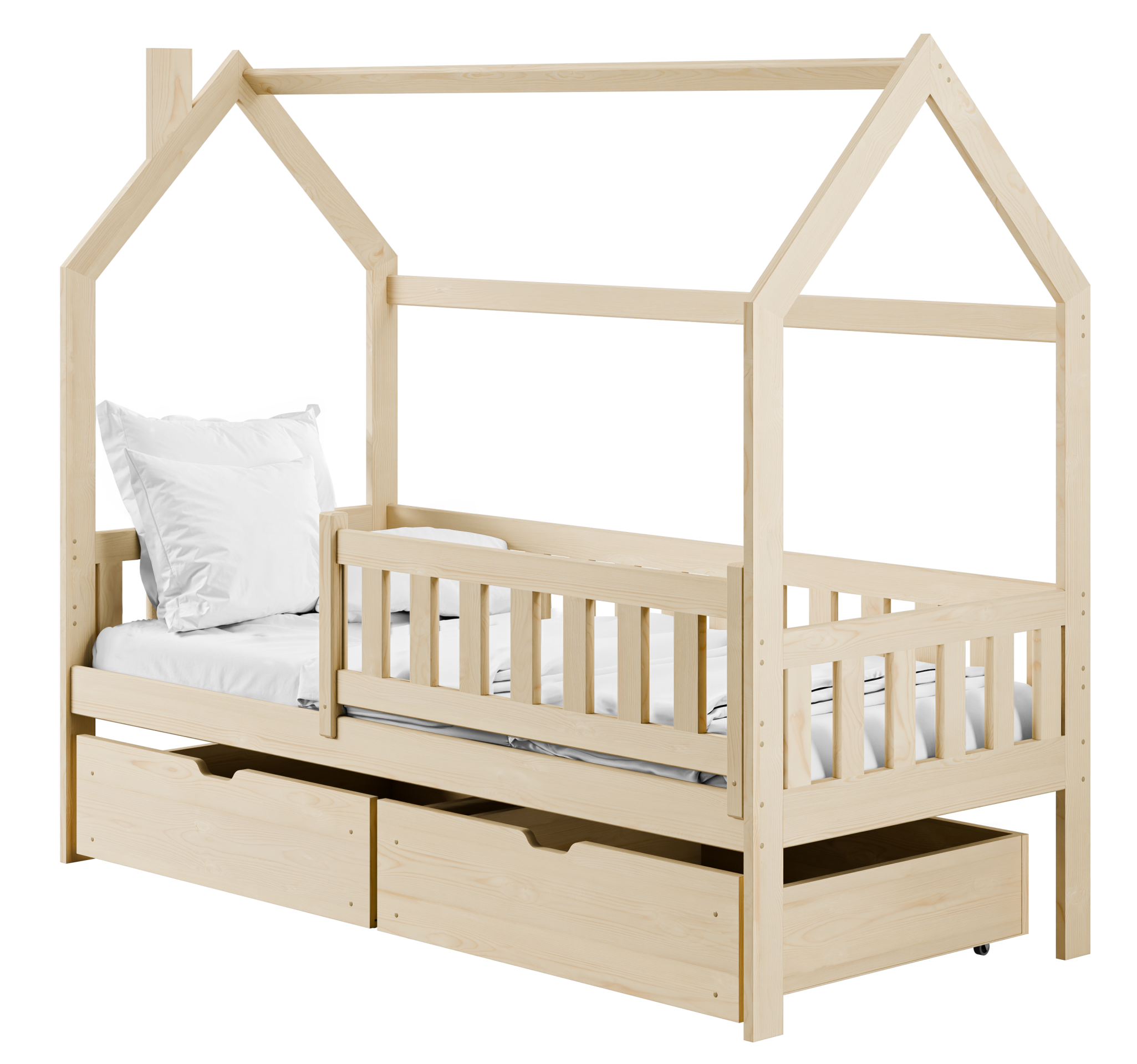 Krevet Natan osmišljen je s mislima na uporabnost i prilagodljivost. Uključuje dvije prostrane ladice, koje su idealne za pohranu posteljine, igračaka ili odjeće. Tako soba uvijek ostaje uredna, a dijete ima sve svoje stvari nadohvat ruke. Ladice se jednostavno izvlače i omogućuju pregledno pohranjivanje bez dodatnih ormarića.