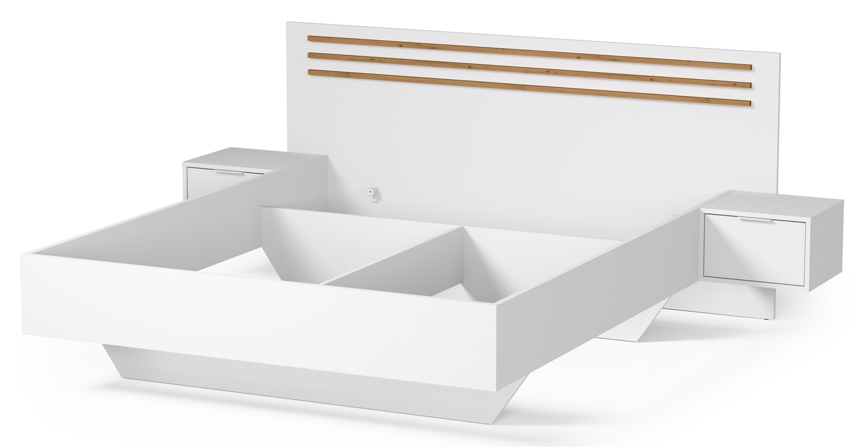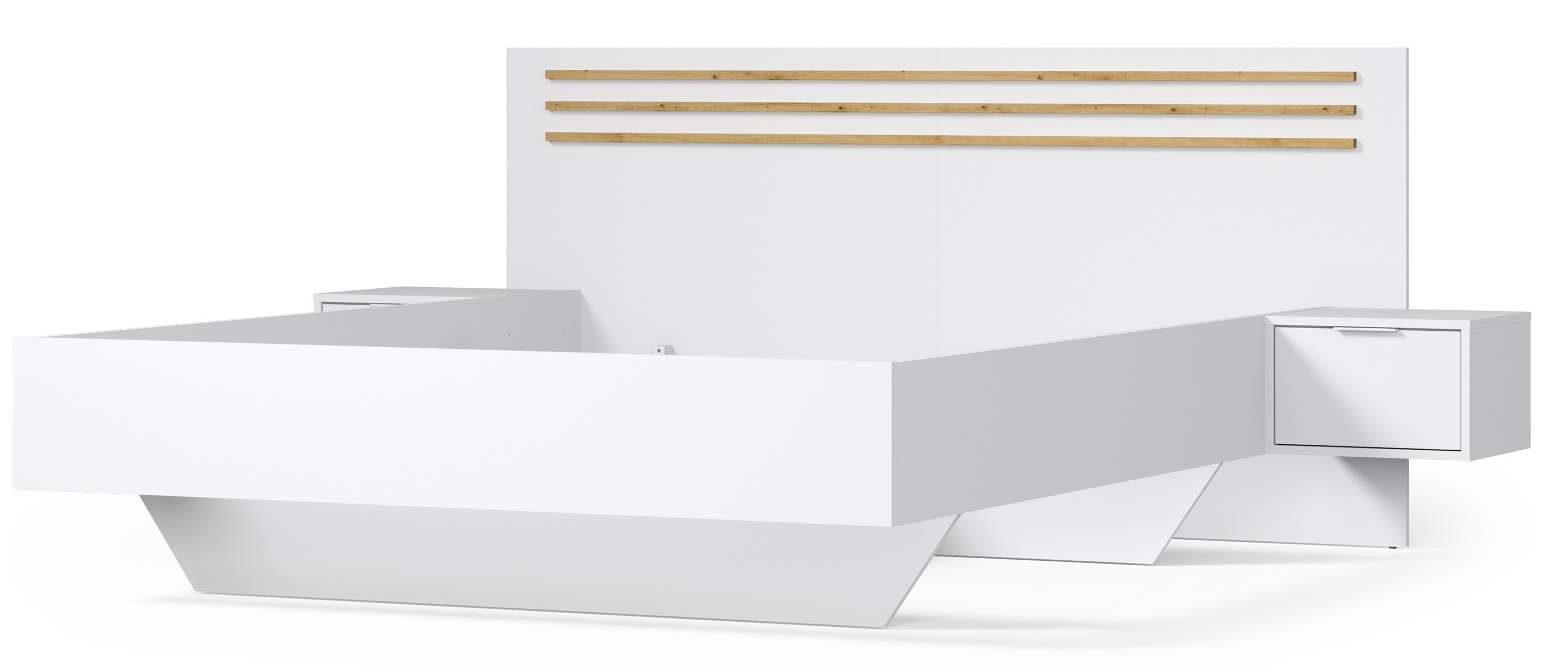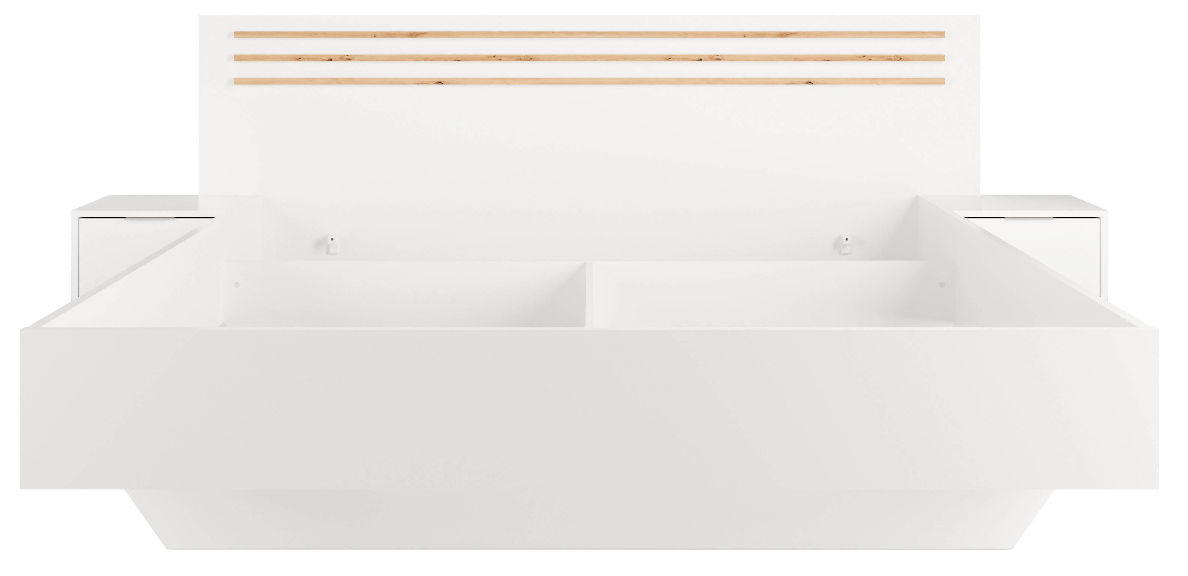 Čista bijela boja, dopunjena detaljima u toplom tonu hrasta artisan na letvicama, stvara elegantan kontrast i osjećaj svježine. Bijela površina vizualno povećava prostor i odlično se uklapa u različite stilove uređenja – od minimalističkog do klasičnog ili skandinavskog. Takva kombinacija vam omogućuje da spavaću sobu preuredite po vlastitim željama, a da se ne morate odreći usklađenosti s postojećim namještajem.