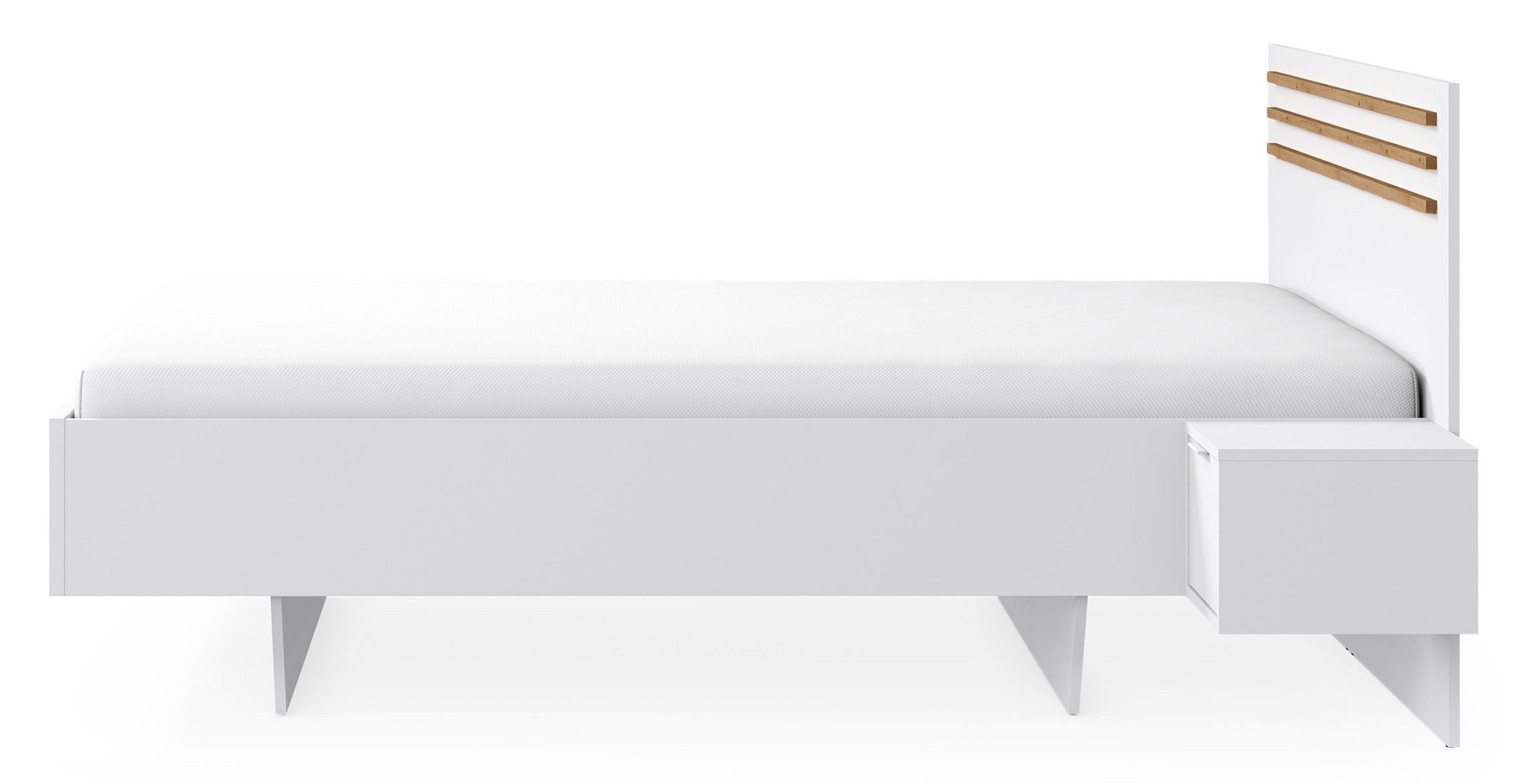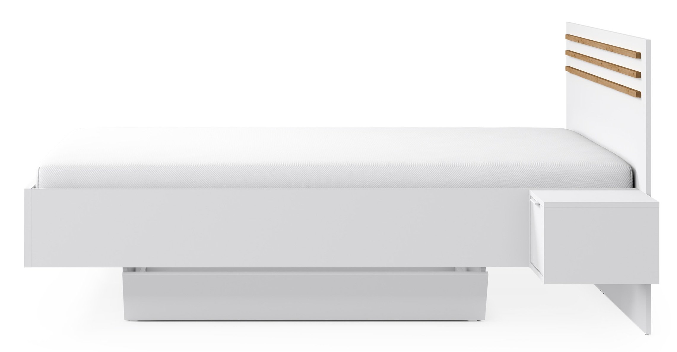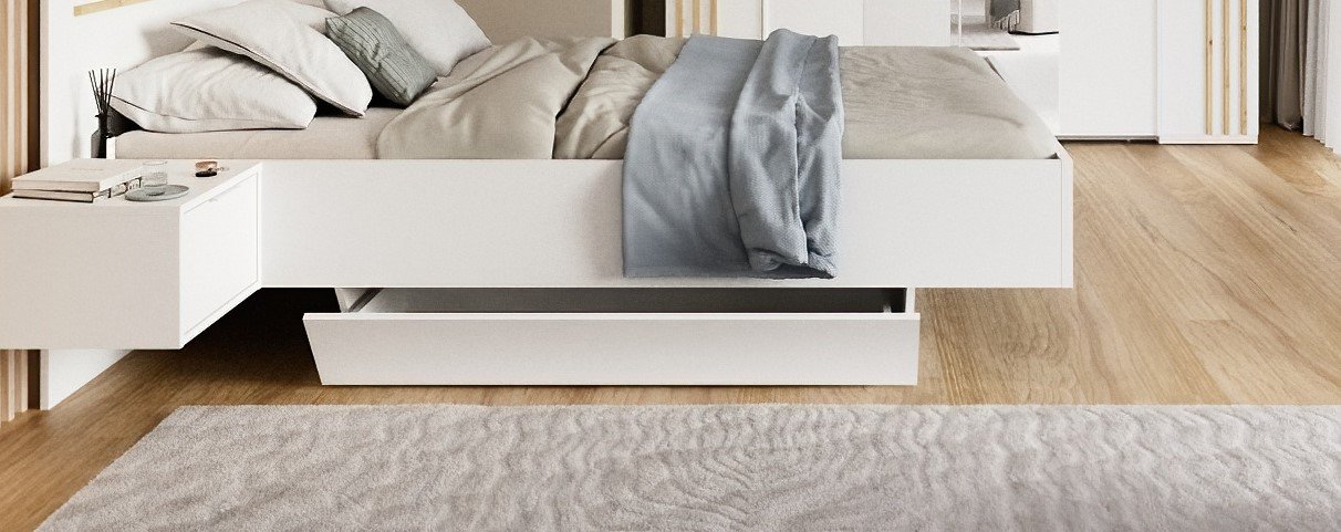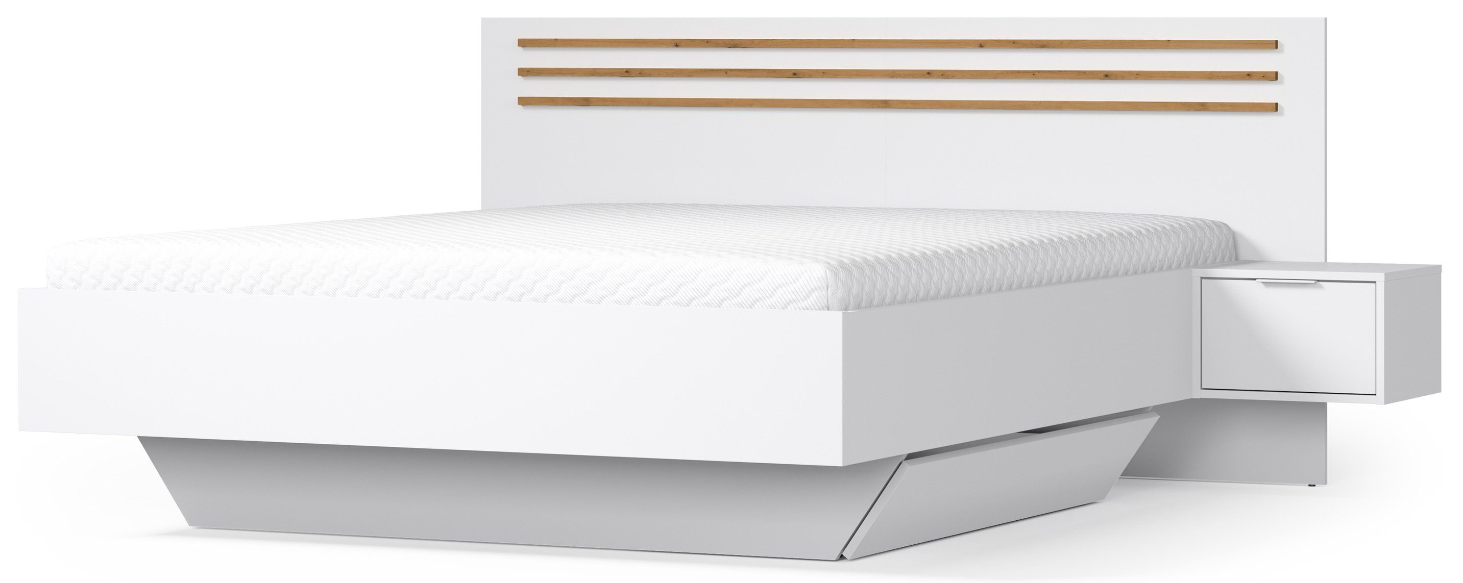 Čista bijela boja, dopunjena detaljima u toplom tonu hrasta artisan na letvicama, stvara elegantan kontrast i osjećaj svježine. Bijela površina vizualno povećava prostor i odlično se uklapa u različite stilove uređenja – od minimalističkog do klasičnog ili skandinavskog. Takva kombinacija vam omogućuje da spavaću sobu preuredite po vlastitim željama, a da se ne morate odreći usklađenosti s postojećim namještajem.