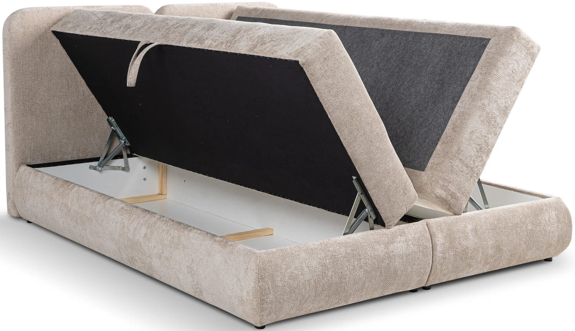 Jedna od ključnih prednosti modela Runo je ugrađeni mehanizam za podizanje, koji omogućuje jednostavan pristup prostranoj ladici za posteljinu. Ovo rješenje posebno je korisno u manjim spavaćim sobama, gdje je svaki dodatni prostor za pohranu dobrodošao. Krevet je osmišljen kao krevet s ležištem – što znači da ne zahtijeva zasebno letveno dno, jer je ležajni sustav već integriran u konstrukciju. Tako je upotreba jednostavna, bez dodatnih elemenata ili montažnih radova.