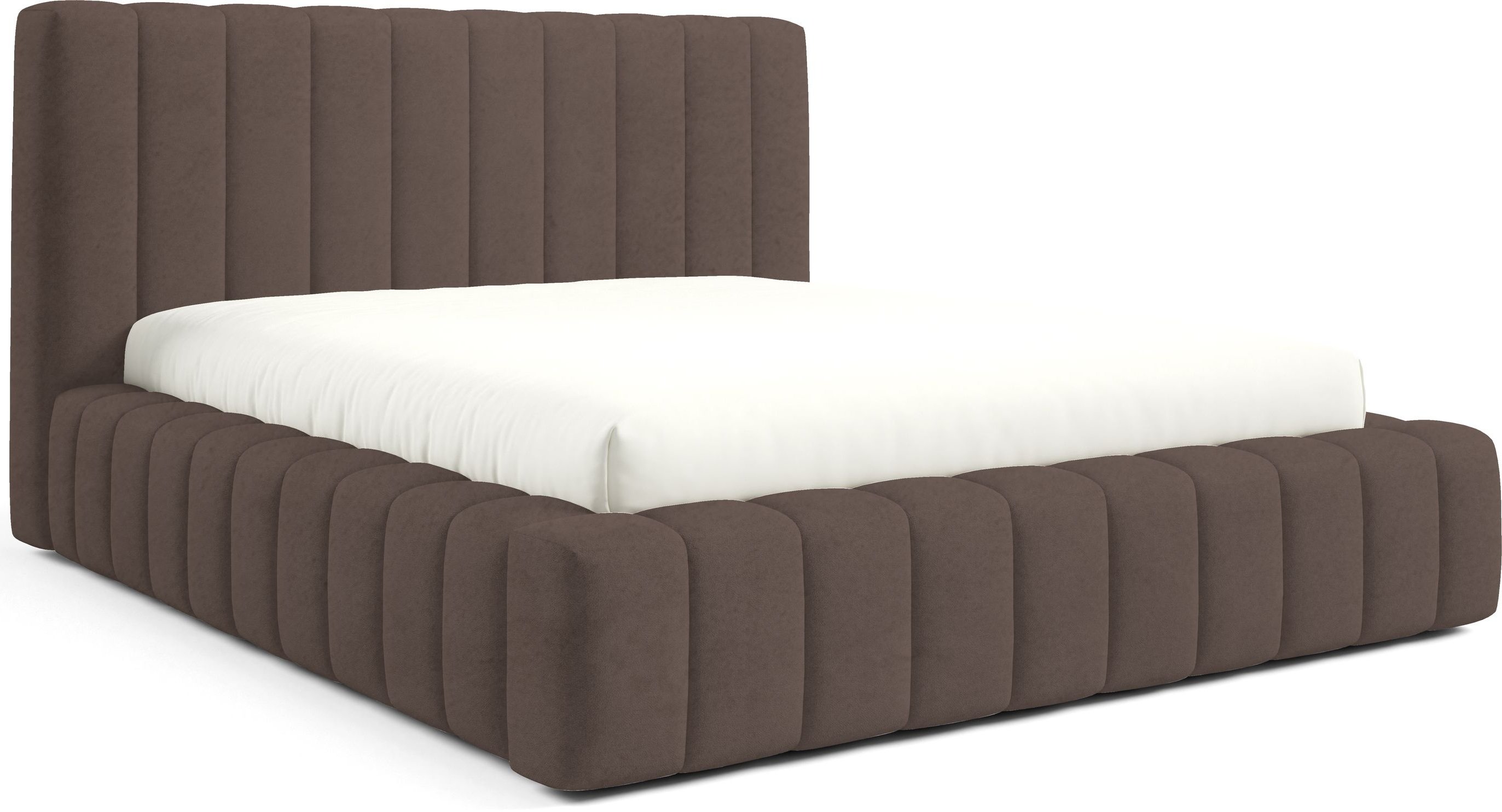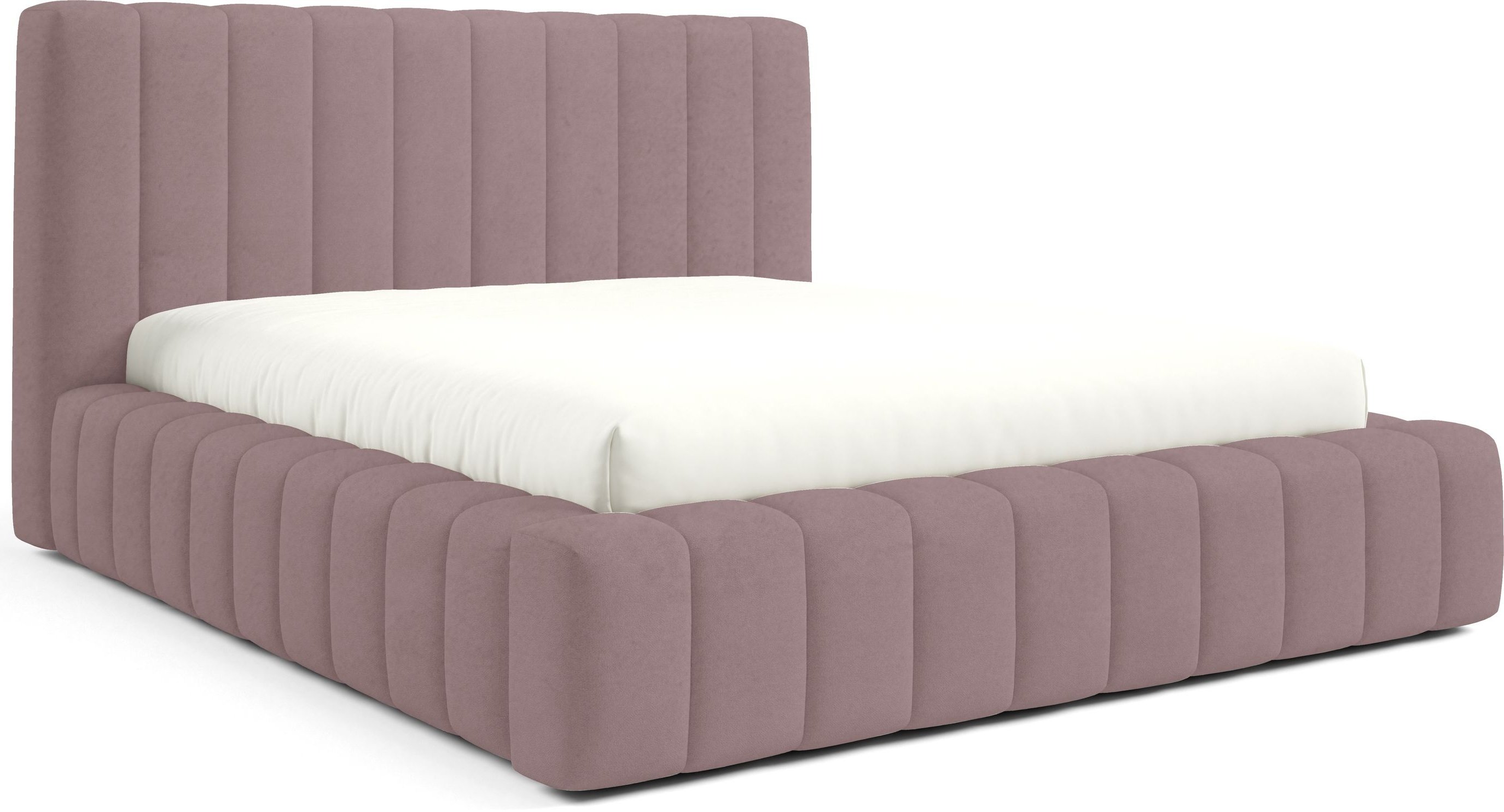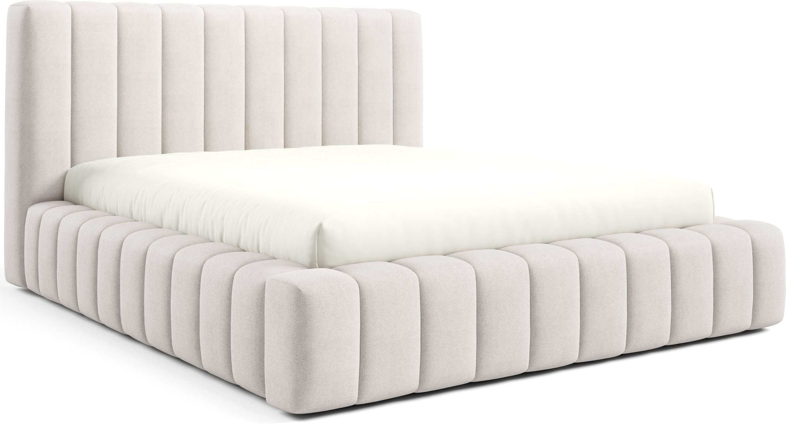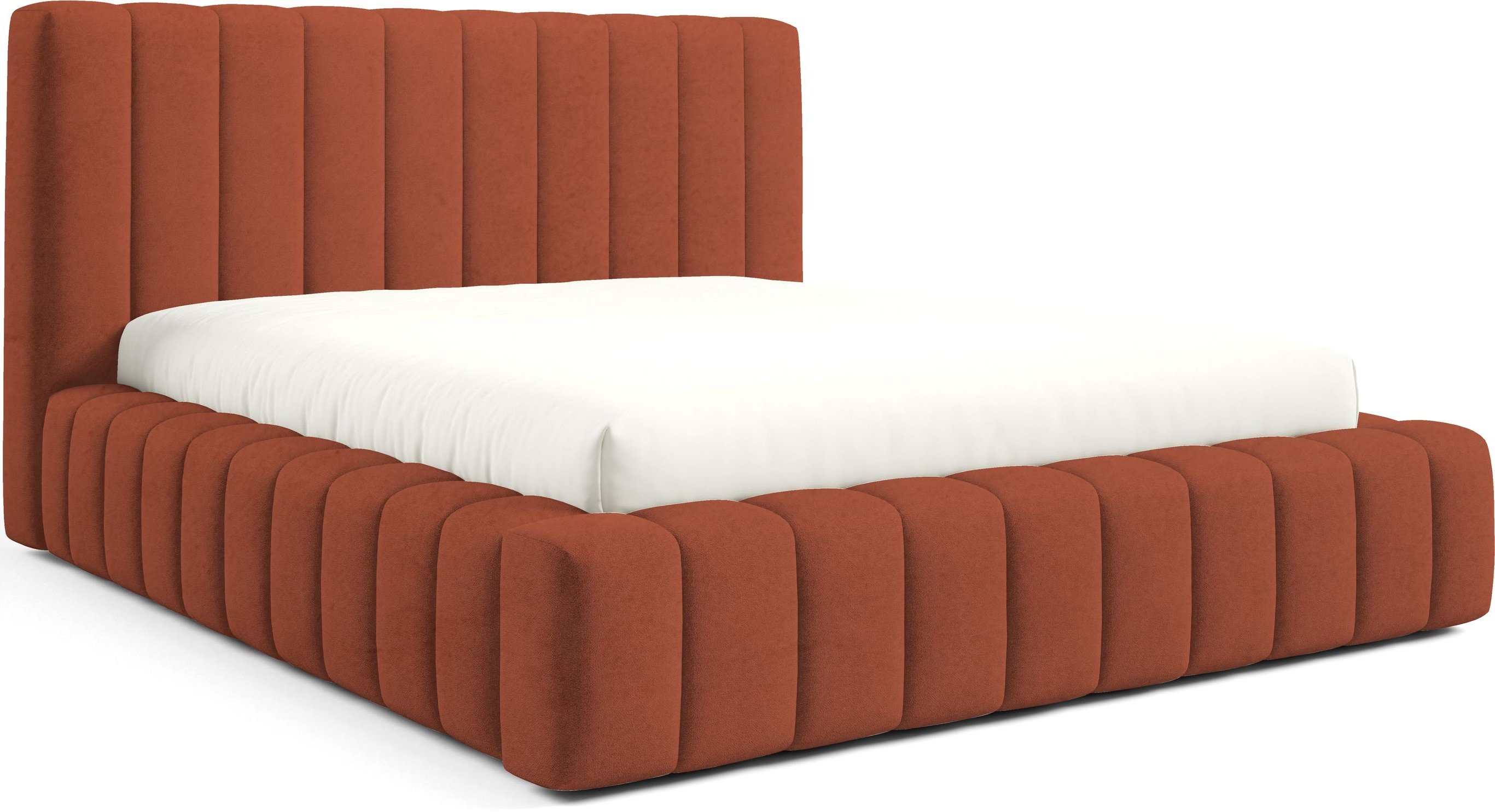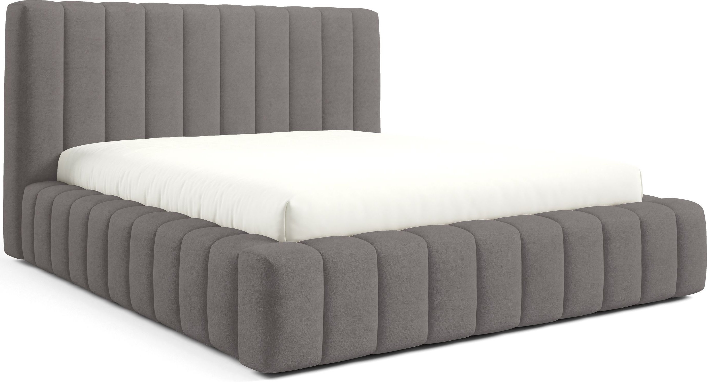 Krevet je presvučen mekom tkaninom koja daje ugodan osjećaj i dodaje toplinu prostoru. Na prezentacijskoj fotografiji korištena je tkanina Velluto 01, koja se odlikuje baršunastom teksturom i bogatim izgledom. Kombinacija tkanine i masivnog drva u konstrukciji osigurava stabilnost i dug vijek trajanja. Drveni elementi zadržavaju prirodnu čvrstoću, dok tekstilni dijelovi osiguravaju udobnost i estetski dojam.