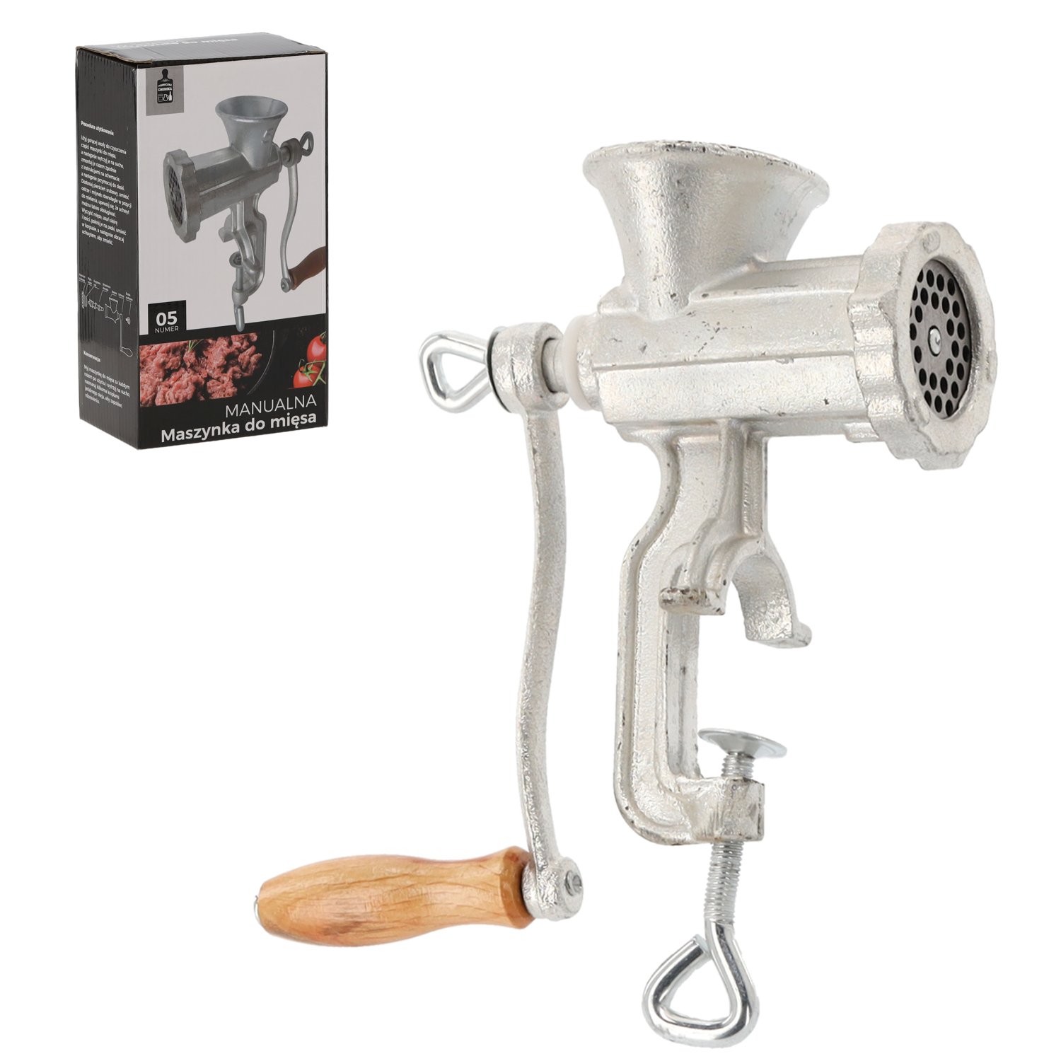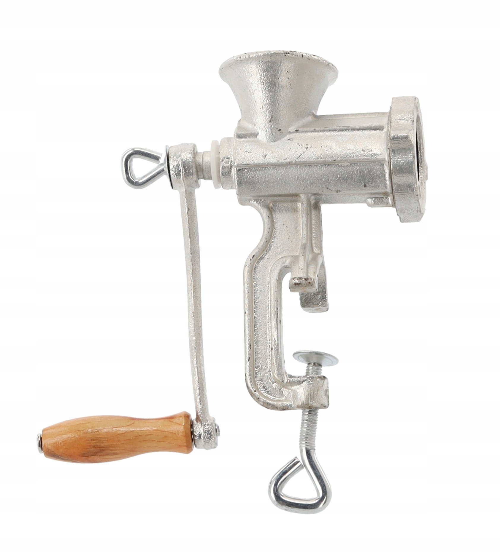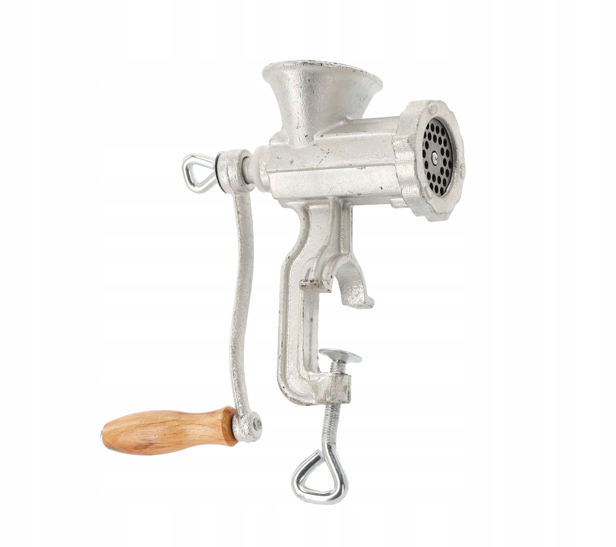 Ručna mašinica za mljevenje mesa Chomik br. 5 klasičan je, ali iznimno izdržljiv kuhinjski uređaj koji svojom robusnom konstrukcijom od lijevanog željeza i kvalitetnim čeličnim oštricama osigurava dug vijek trajanja i ravnomjerno mljevenje. Proizvod je namijenjen svima koji cijene tradicionalnu pripremu hrane i žele zadržati potpunu kontrolu nad teksturom mljevenog mesa. Njezina srebrna metalna površina otporna je na koroziju, a ručni pogon omogućuje upotrebu bilo gdje – bez potrebe za električnom energijom. S kompaktnom veličinom i težinom od 1,5 kg, mašinica se lako pričvršćuje na stol ili pult pomoću snažnog vijka, što omogućuje stabilan i siguran rad i pri većim količinama mesa.