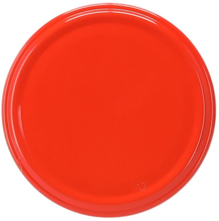 Poklopac je izrađen od metalnog materijala s zaštitnim slojem koji pruža otpornost na koroziju i omogućuje višekratnu upotrebu ako se pri otvaranju ne ošteti. Površina je obrađena tako da je jednostavna za čišćenje, a unutarnja strana ima zaštitni premaz prikladan za kontakt s hranom. Crvena boja poklopca nije samo estetska, već i praktična – dobro se uklapa s različitim vrstama ambalaže te omogućuje brzo prepoznavanje sadržaja u smočnici.