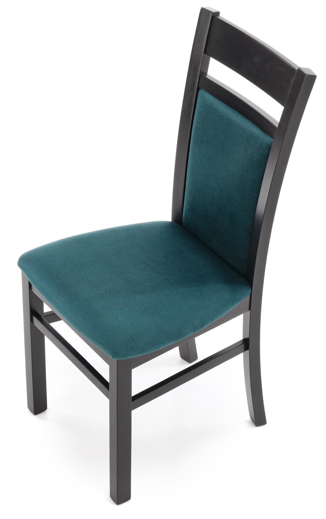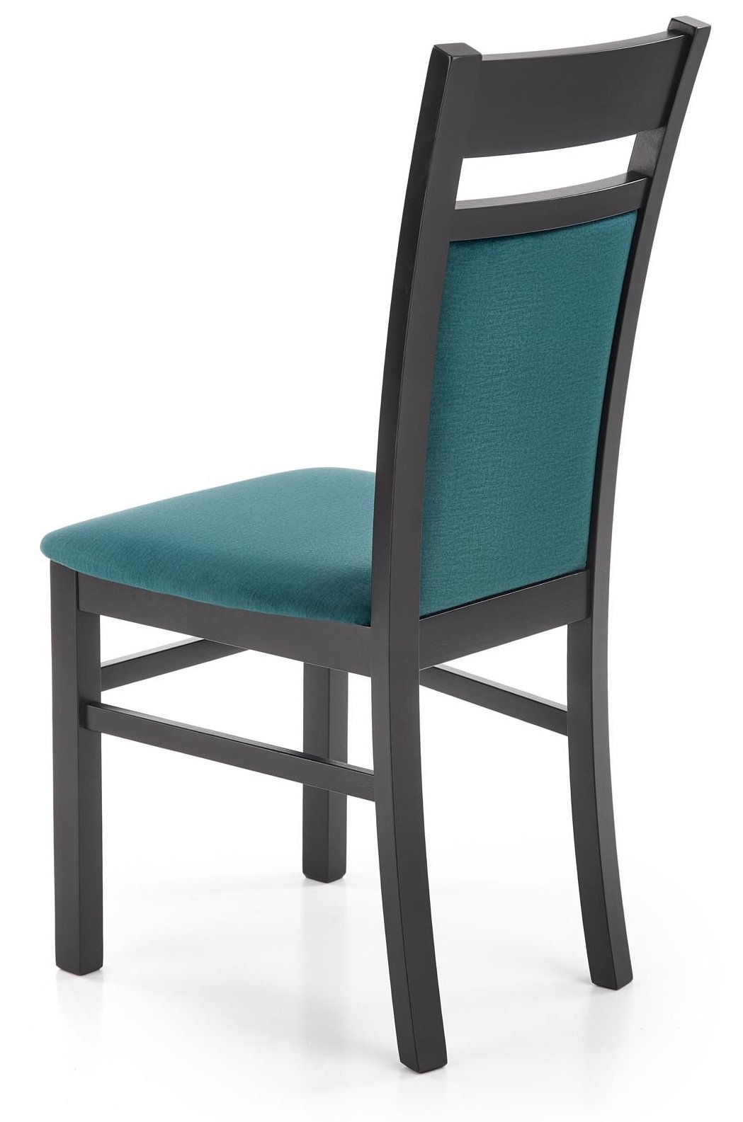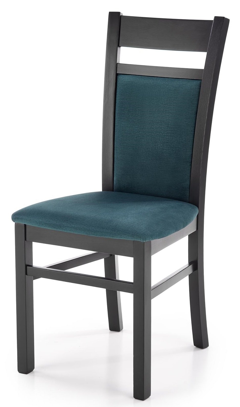 Blagovaonska stolica Gerard2 u klasičnom stilu s tapeciranim sjedištem i naslonom od okomitih letvica. Konstrukcija stolice je dodatno ojačana bočnim letvicama u podnožju.