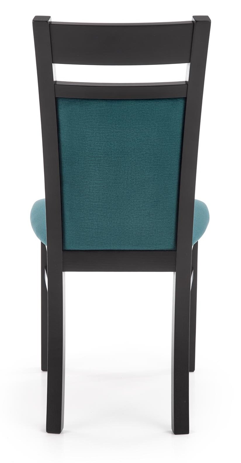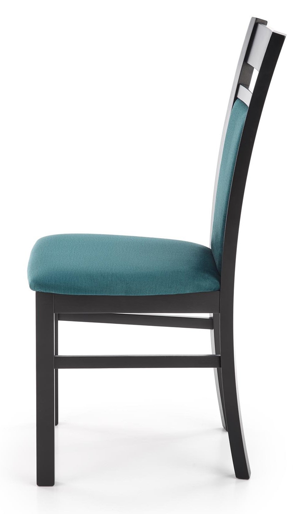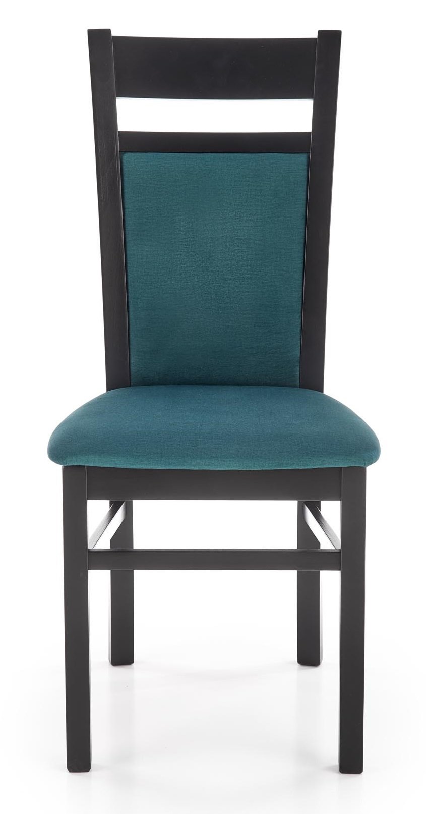 Blagovaonska stolica Gerard2 u klasičnom stilu s tapeciranim sjedištem i naslonom od okomitih letvica. Konstrukcija stolice je dodatno ojačana bočnim letvicama u podnožju.