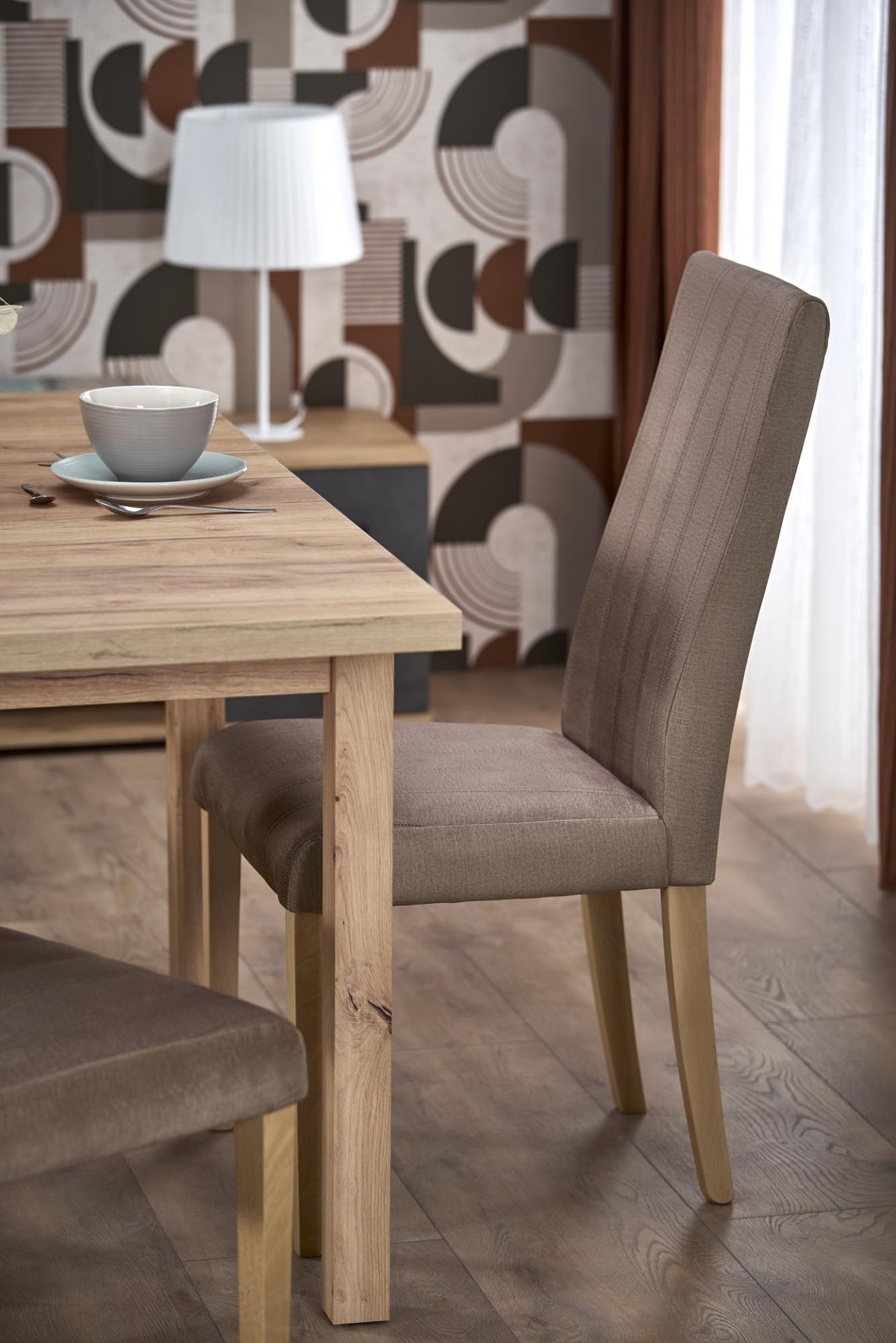 Blagovaonski kvadratni stol na razvlačenje Tiago je izrađen od laminatne ploče u kombinaciji bijele boje i hrasta. Praktičan stol manjih dimenzija s funkcijom razvlačenja ne zauzima puno prostora, po potrebi se može razvući i idealan je za manje prostore.