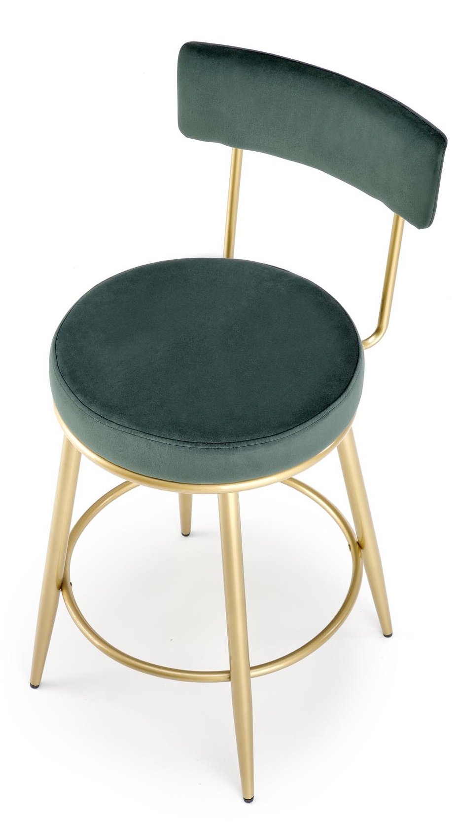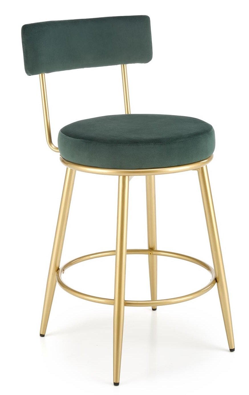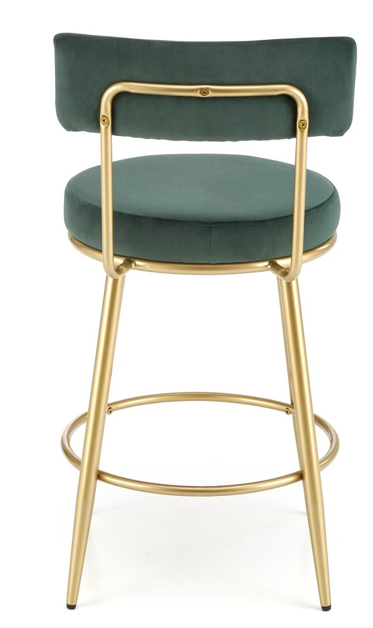 Barska stolica H115 od baršunaste tkanine se ističe dizajnerskim oblikom naslona i odgovara najnovijim trendovima u dizajnu interijera. Moderne boje sjedišta u kombinaciji sa zlatnim okvirom oduševit će i najzahtjevnije kupce.