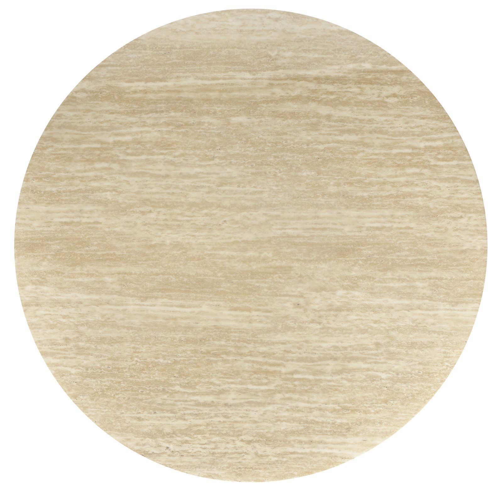 Ovaj blagovaonski stol predstavlja savršen spoj suvremenog minimalizma i klasične elegancije. Njegove dimenzije od 120x120x76 cm omogućuju dovoljno prostora za ugodno druženje i objedovanje, dok kompaktan oblik okruglog stola stvara osjećaj bliskosti i povezanosti među osobama koje sjede za njim. Površina stola izrađena je od lakiranog mramora koji odiše luksuzom i otpornošću, dok laminirani MDF u boji oraha i travertina unosi toplinu i prirodnu teksturu u prostor.