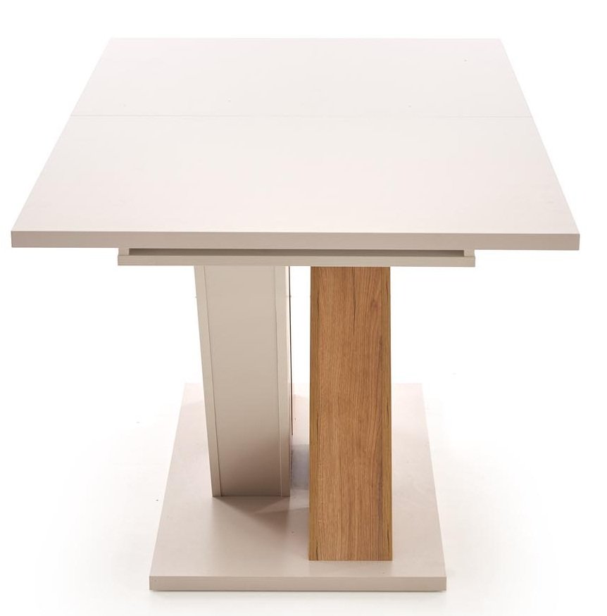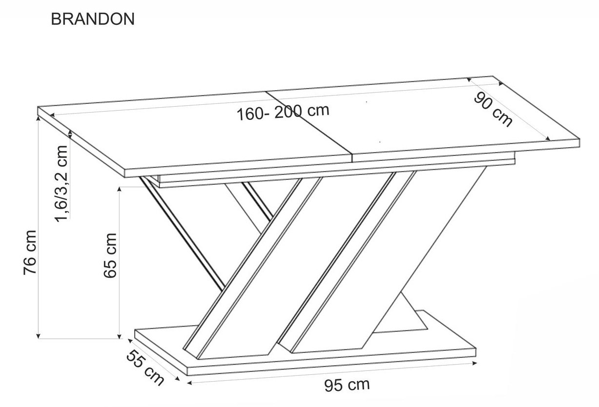 Produživi blagovaonski stol Brandon marke Halmar spaja moderan dizajn, funkcionalnost i iznimnu kvalitetu izrade. Riječ je o komadu namještaja koji se bez poteškoća prilagođava različitim životnim situacijama – od intimnih obiteljskih ručkova do većih proslava s prijateljima. S produživim mehanizmom omogućuje brzu promjenu dužine sa 160 cm na 200 cm, što znači da ćete uvijek imati dovoljno prostora za sve svoje goste. Površina od laminirane ploče namještaja i okvir od MDF ploče osiguravaju stabilnost, izdržljivost i dug vijek trajanja, a istovremeno olakšavaju svakodnevno čišćenje i održavanje.