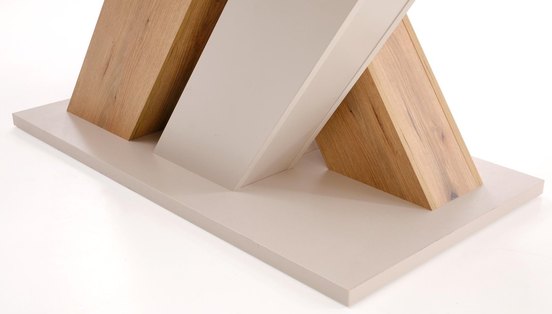 Stol Brandon ističe se svojom profinjenom kombinacijom boja kašmira i hrasta Cremona. Toplina prirodnog izgleda drva savršeno se slaže s nježnim bež tonom, što stvara uravnotežen i ugodan izgled. Takav koloristički koncept omogućuje da se stol lijepo uklopi u različite stilove unutarnjeg uređenja – od moderne minimalističke blagovaonice do klasičnije uređenih ambijenata. Laminirana površina zadržava svoju boju i strukturu i pri svakodnevnom korištenju, što znači da će stol dugo izgledati kao nov.
