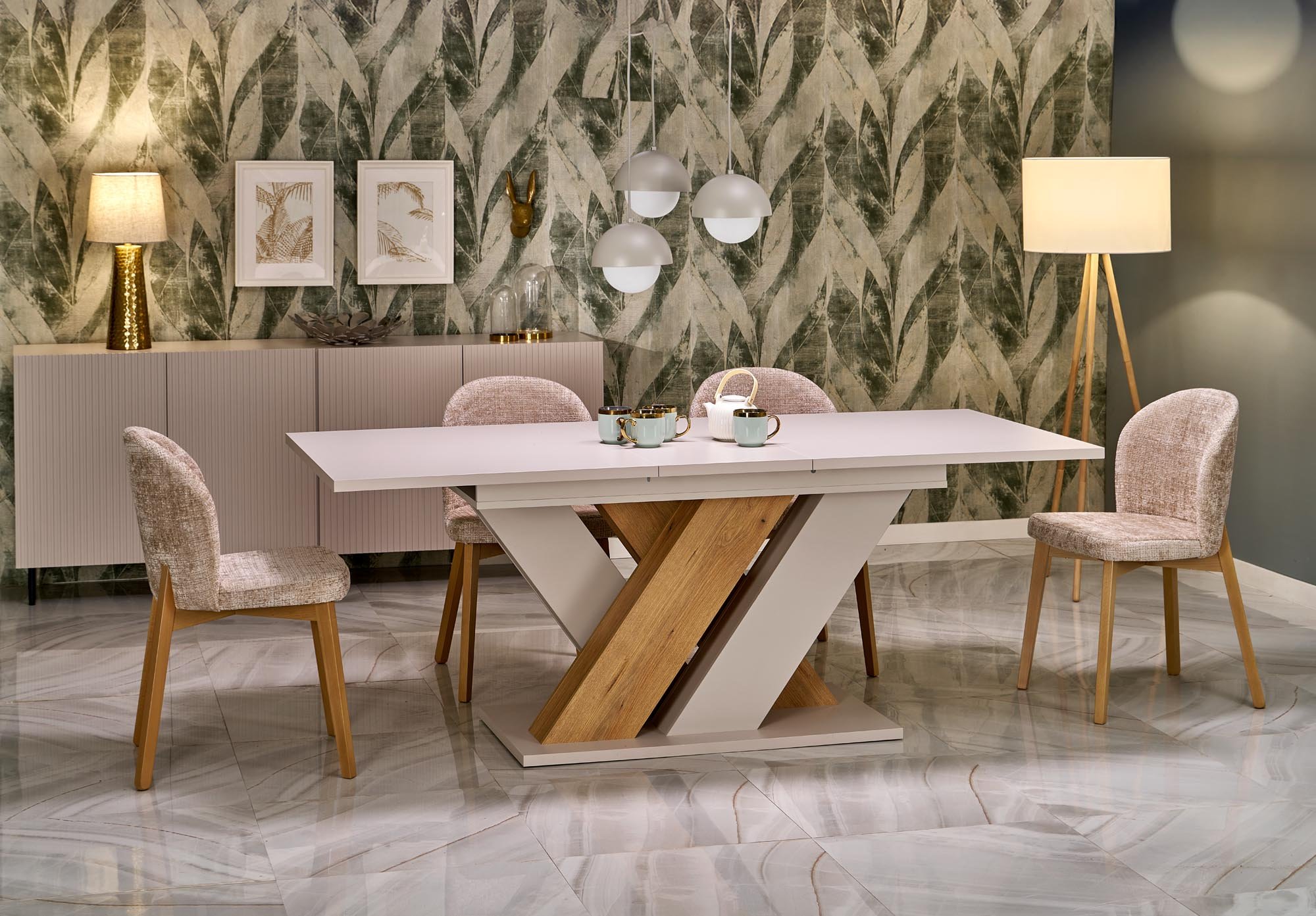 Harmonična kombinacija boja i struktura omogućuje da se stol Brandon jednako dobro slaže s modernim metalnim stolicama kao i s drvenima u klasičnom stilu. Zbog svog univerzalnog oblika odličan je izbor i za prostrane blagovaonice i za otvorene dnevno-kuhinjske prostore. S njim možete stvoriti ugodno središte doma, gdje se okupljaju obitelj, prijatelji i ukusna hrana.
