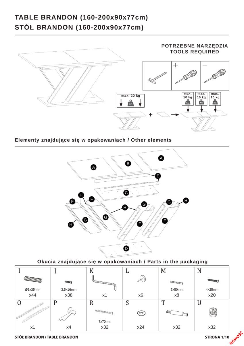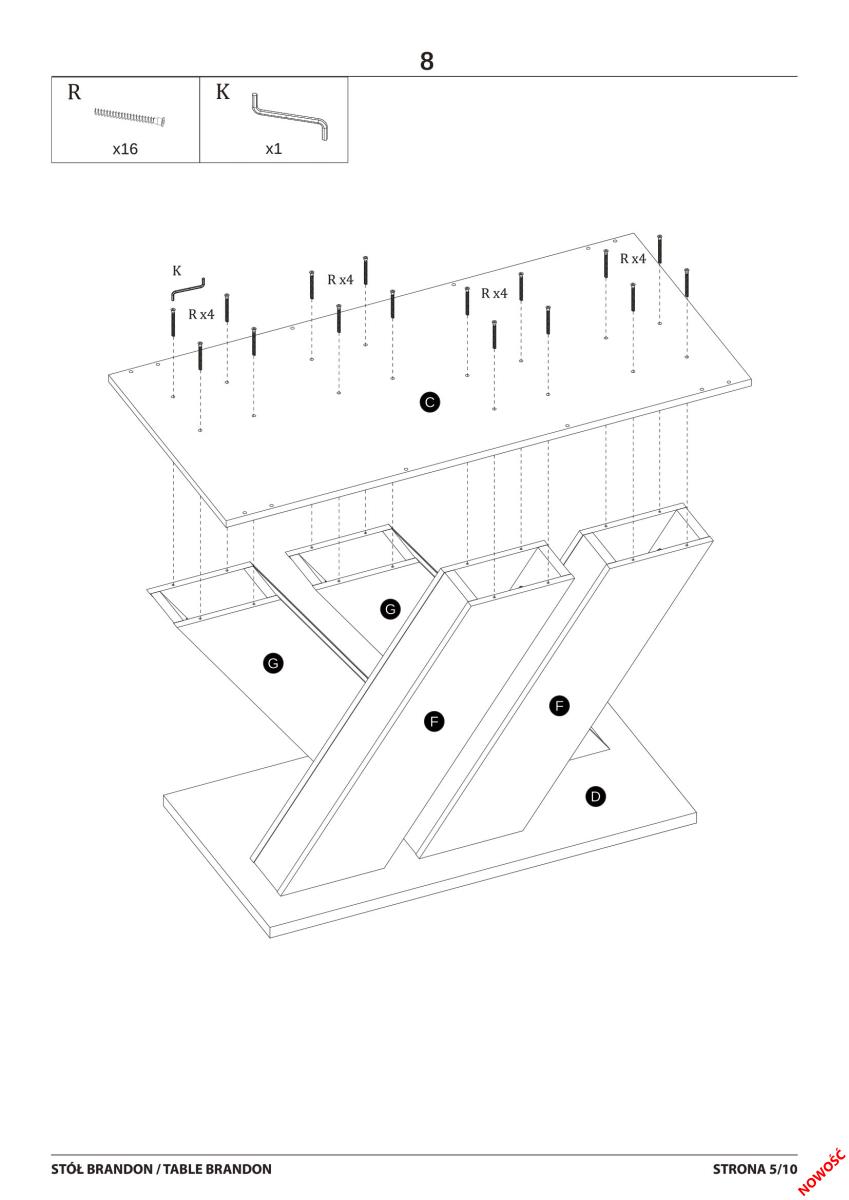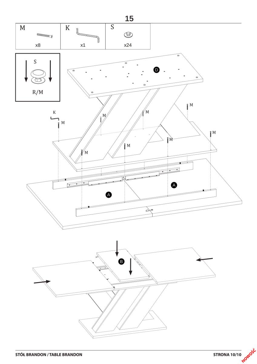 Okvir od MDF ploče doprinosi čvrstoj konstrukciji i osigurava stabilnost, koja je kod većih stolova od ključne važnosti. Stol teži 85 kg, što dodatno potvrđuje njegovu robusnost. Poseban dizajnerski naglasak su noge u obliku slova »X«, koje nisu samo estetski privlačne, već i povećavaju stabilnost cijele konstrukcije. Taj detalj dodaje moderan karakter i čini da stol Brandon ističe među sličnim modelima.