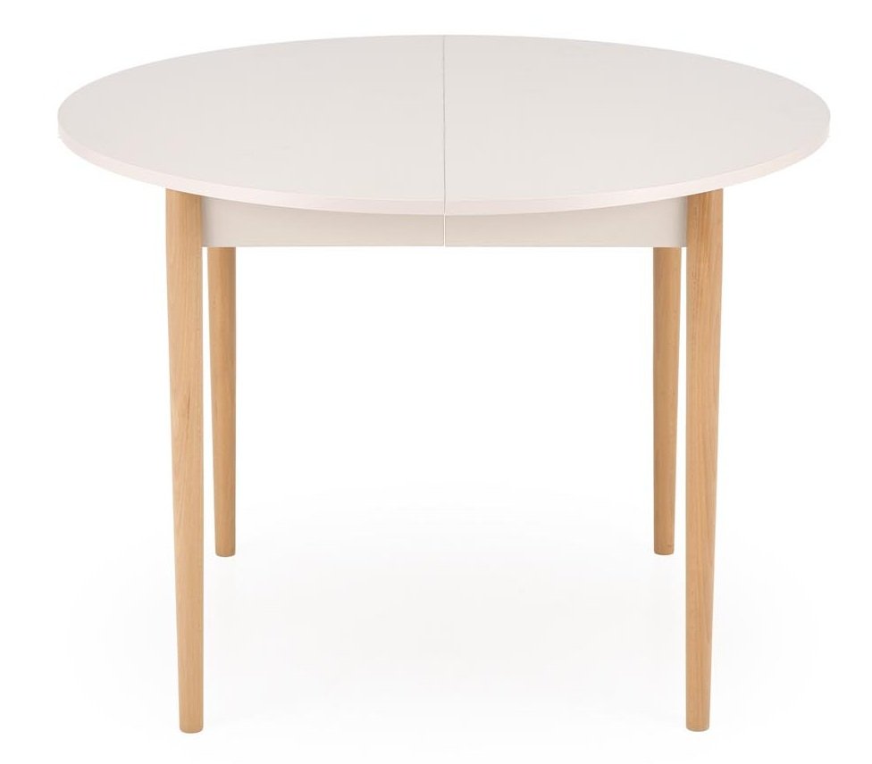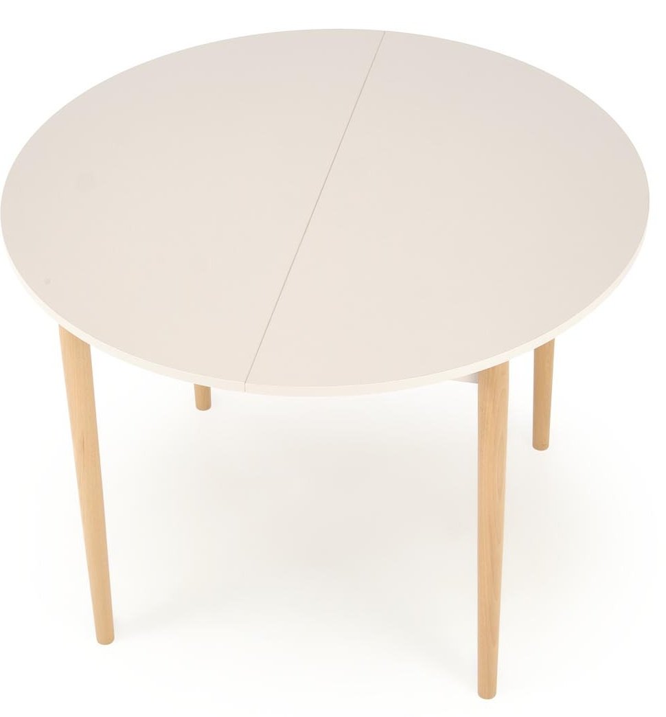 Produžni blagovaonski stol Pivot marke Halmar spaja prirodnu toplinu masivnog drva i suvremenu eleganciju laminirane ploče. S dimenzijama 102–142×102×75 cm nudi prilagodljivo rješenje za svakodnevne i svečane obroke. Njegov profinjen dizajn i uravnotežena kombinacija boja – ploča u nijansi kašmira i noge u prirodnoj boji – stvaraju ugodan, svijetao ambijent, prikladan za različite stilove uređenja interijera. Proizveden u Poljskoj u tvornici Halmar, stol odlikuje kvalitetna izrada i pouzdan mehanizam za izvlačenje.