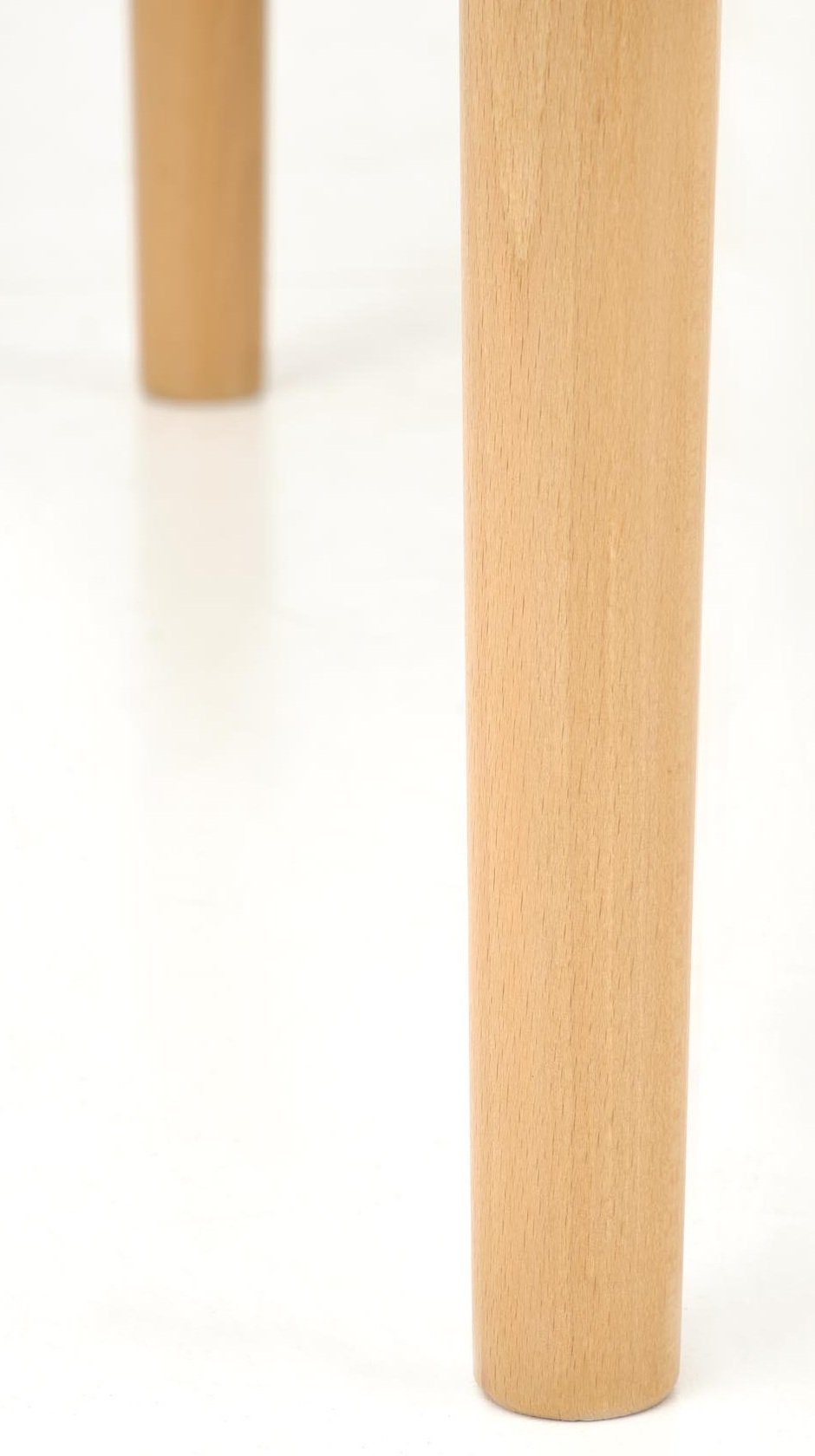 Stol je izrađen od kvalitetne laminirane ploče koja je otporna na svakodnevnu uporabu, ogrebotine i mrlje, što olakšava održavanje i produžuje životni vijek proizvoda. Nosiva konstrukcija i noge izrađene su od masivnog bukovog drva, koje osigurava stabilnost i prirodnu čvrstoću. Kombinacija ta dva materijala spaja suvremenu estetiku s karakterom prirodnog drva, dajući stolu osjećaj topline i autentičnosti.