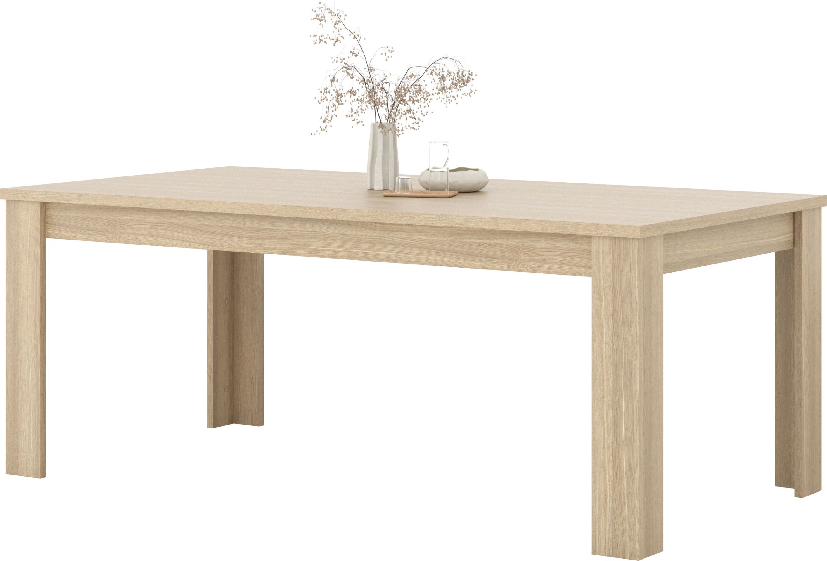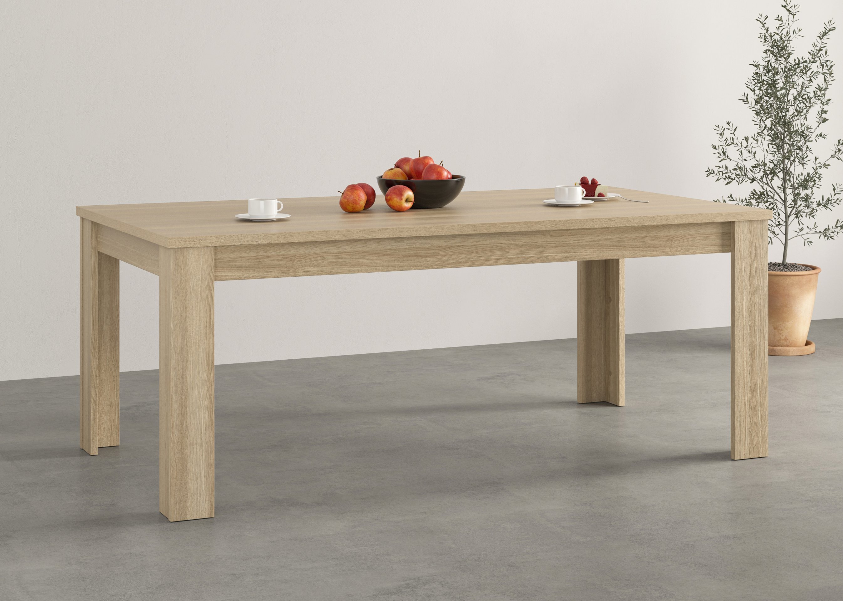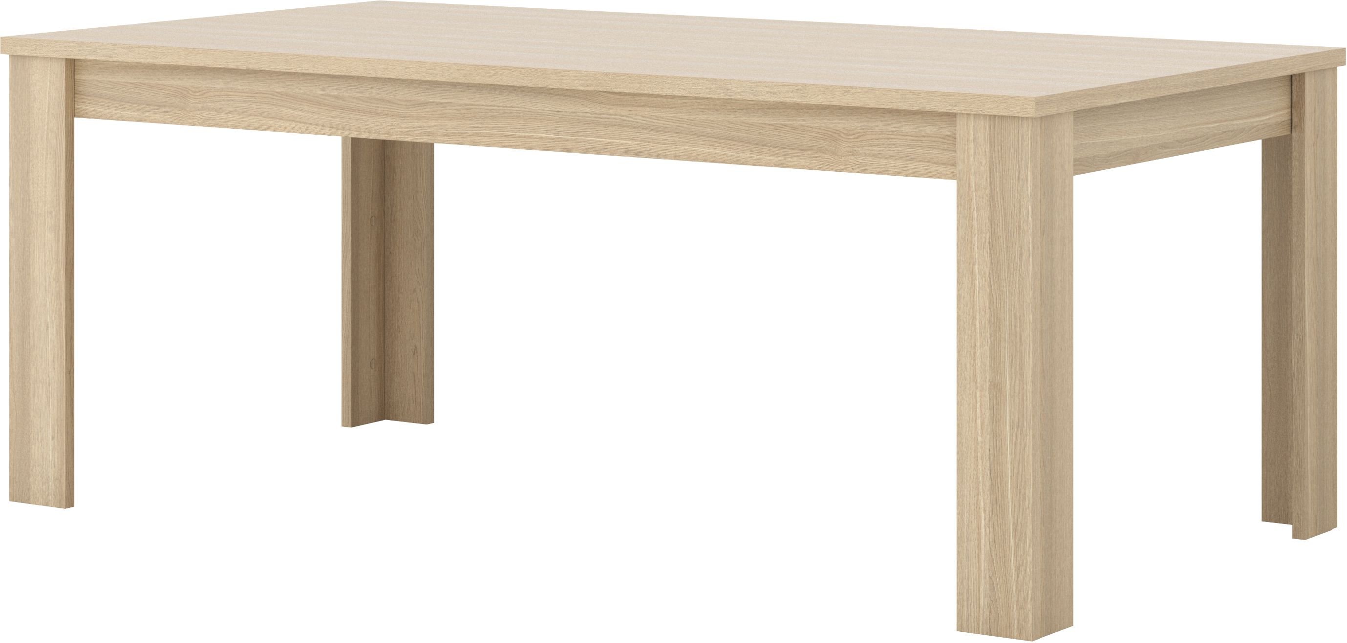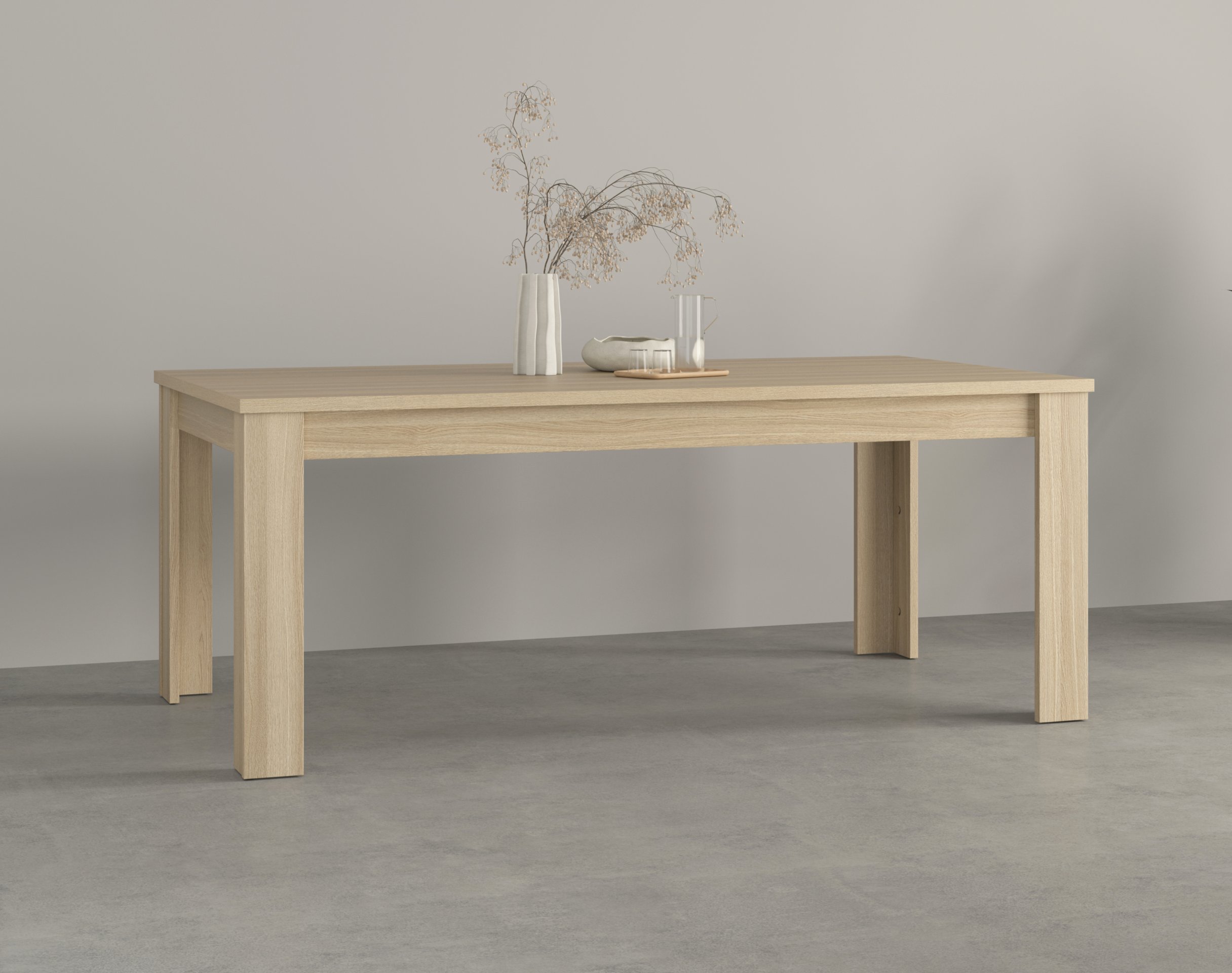 Ovaj prekrasan blagovaonski komad namještaja unosi dozu sofisticiranosti i topline u svaki interijer. Izrađen od kvalitetnog iverala, poznatog po svojoj otpornosti i jednostavnom održavanju, predstavlja dugotrajan i pouzdan izbor za svaku obitelj. Površina u elegantnom tonu hrasta donosi prirodan izgled i osjećaj ugode, stvarajući savršenu pozadinu za zajedničke trenutke uz obiteljske obroke ili druženja s prijateljima. S dimenzijama 190x100x76 cm, ovaj stol nudi dovoljno prostora za udobno posluživanje jela i smještaj više osoba, čineći ga idealnim središtem vaše blagovaonice.