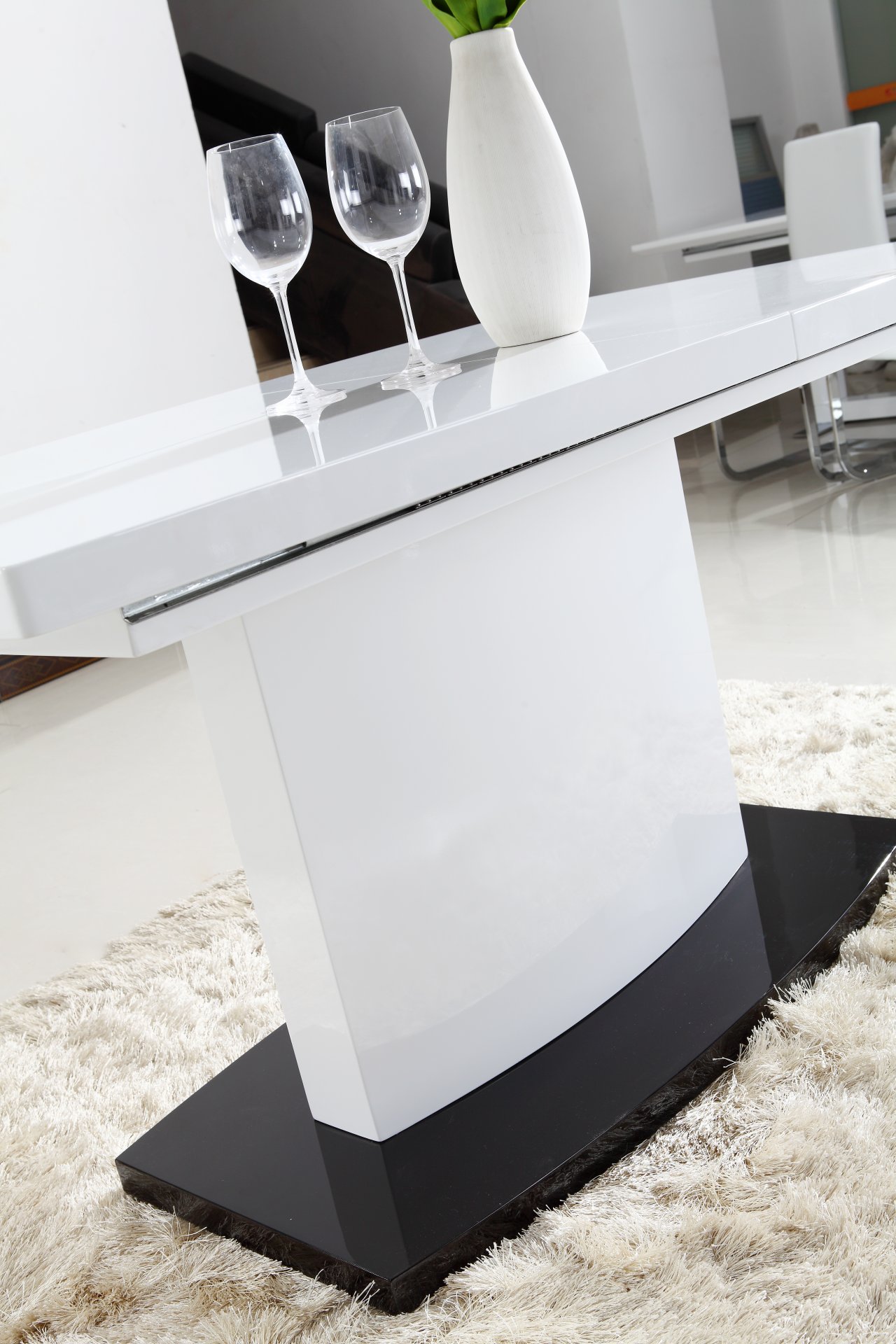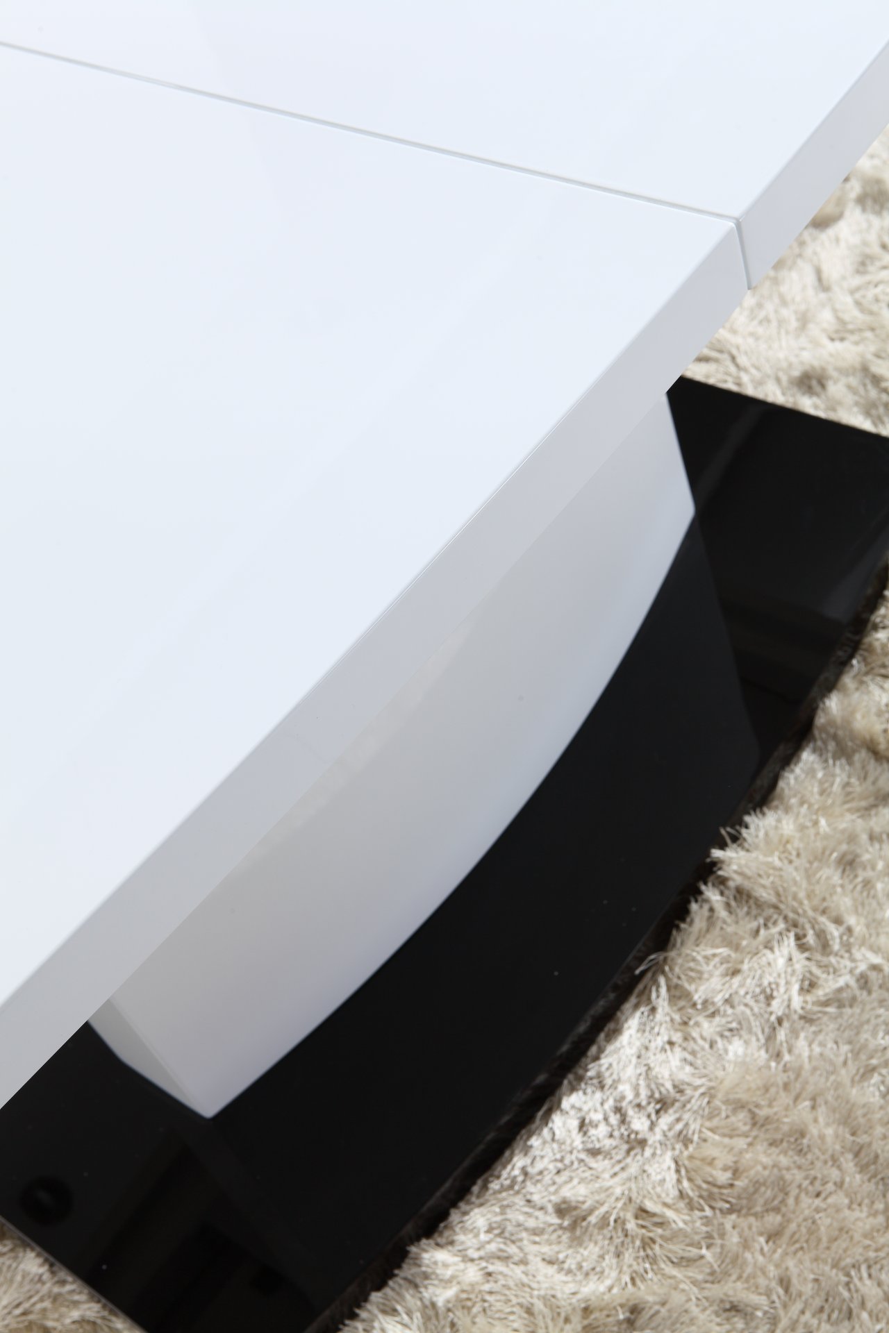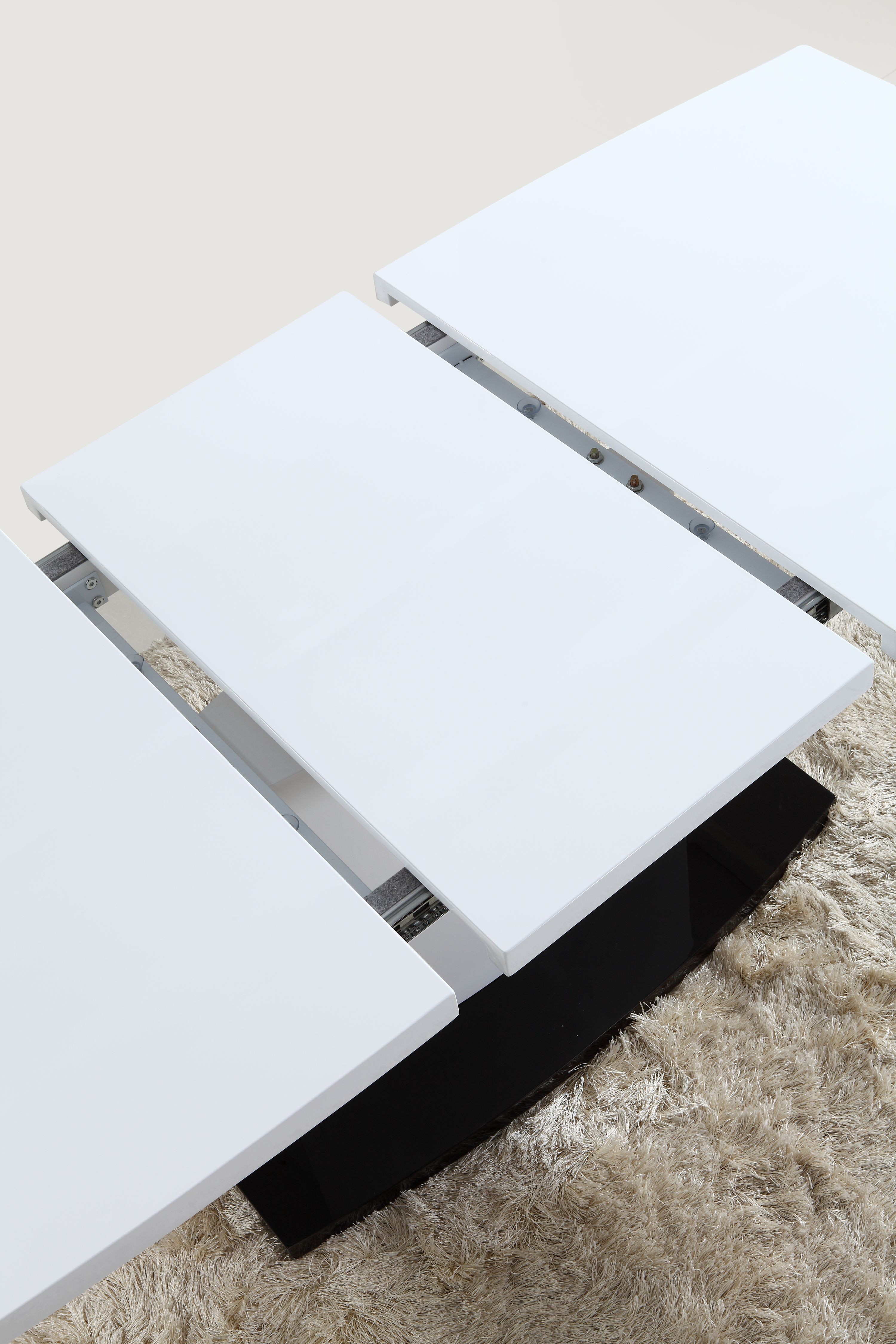 Stol na razvlačenje od MDF-a bijelog visokog sjaja, donja ploča postolja u boji crnog visokog sjaja.