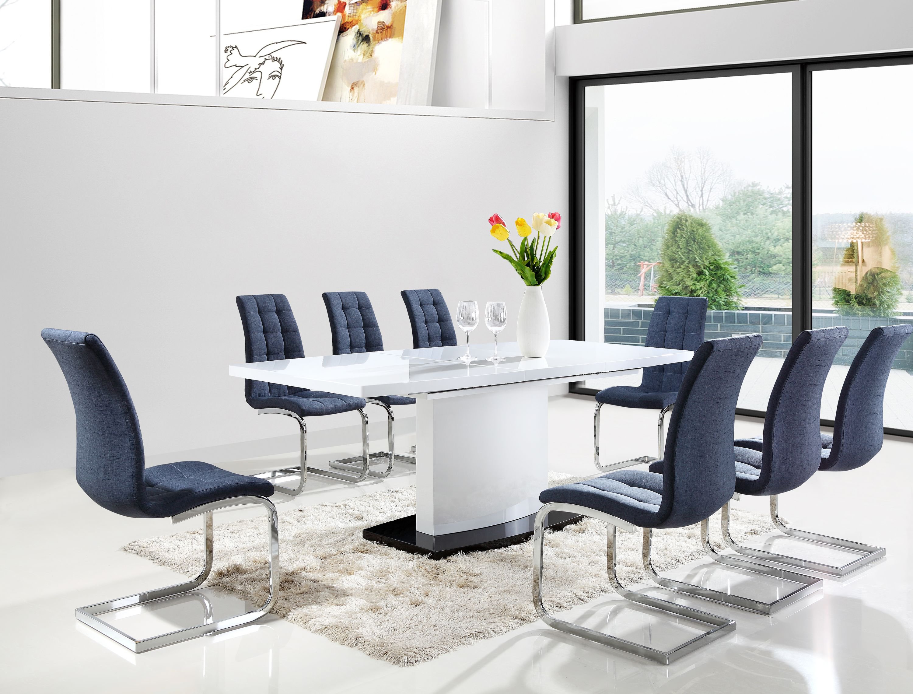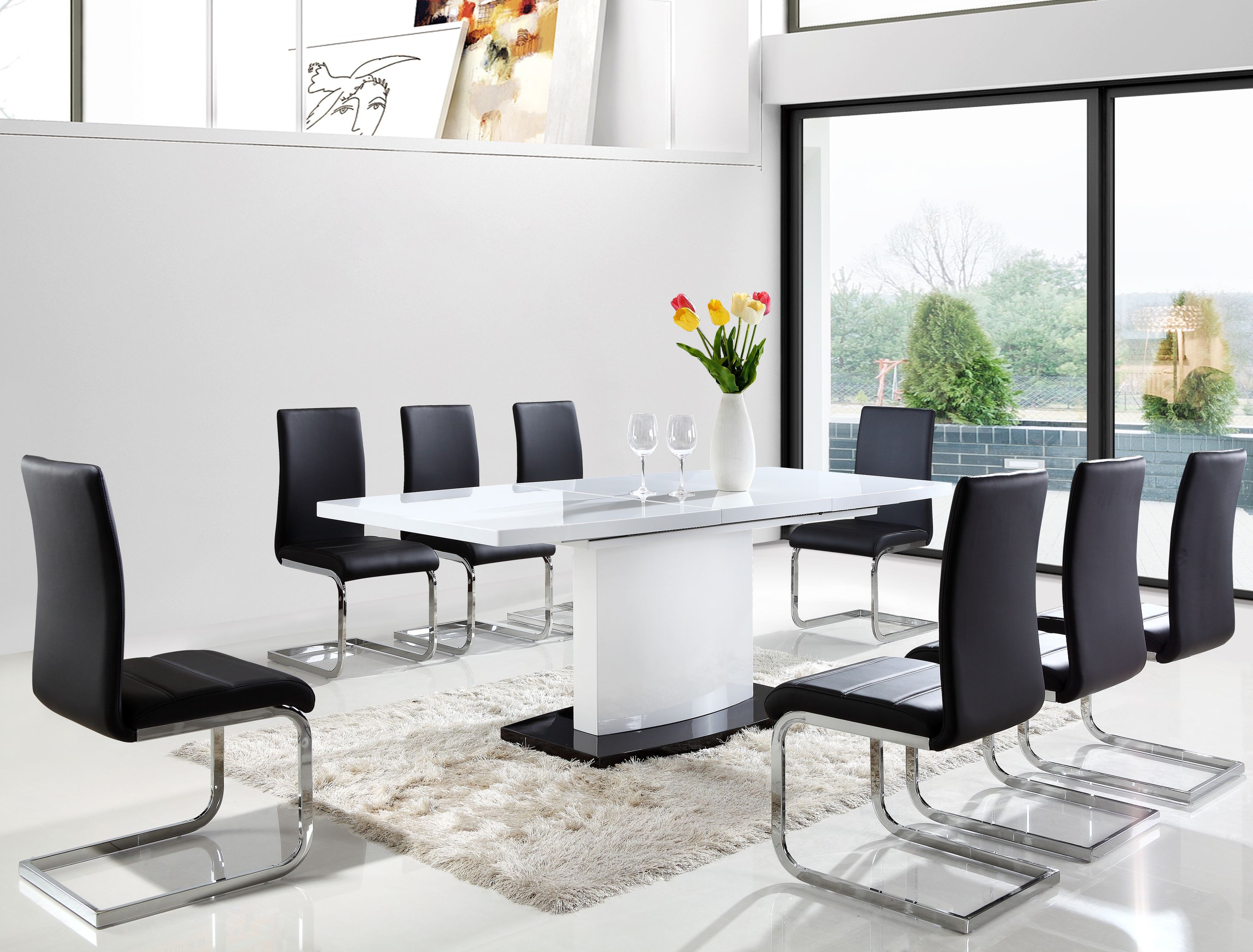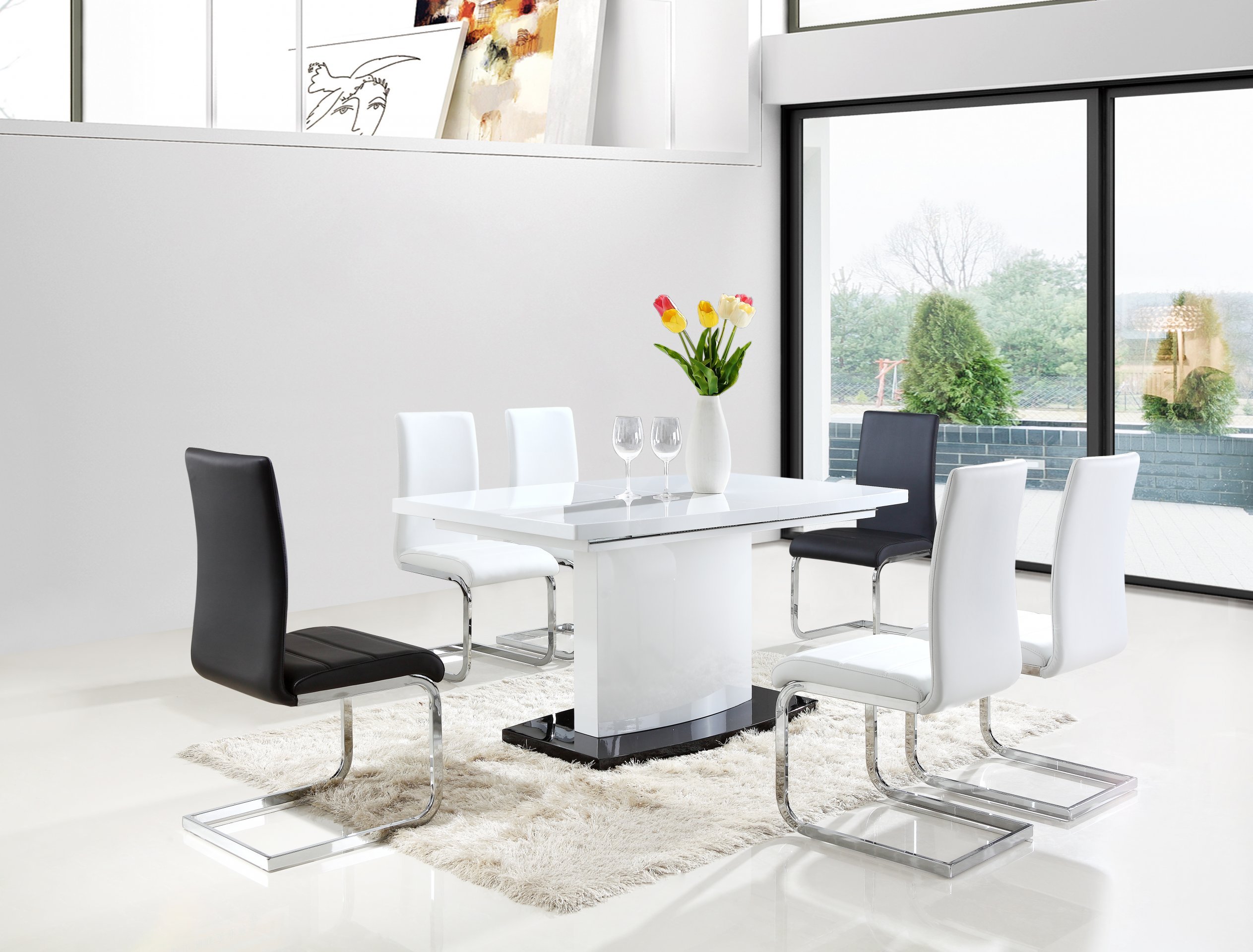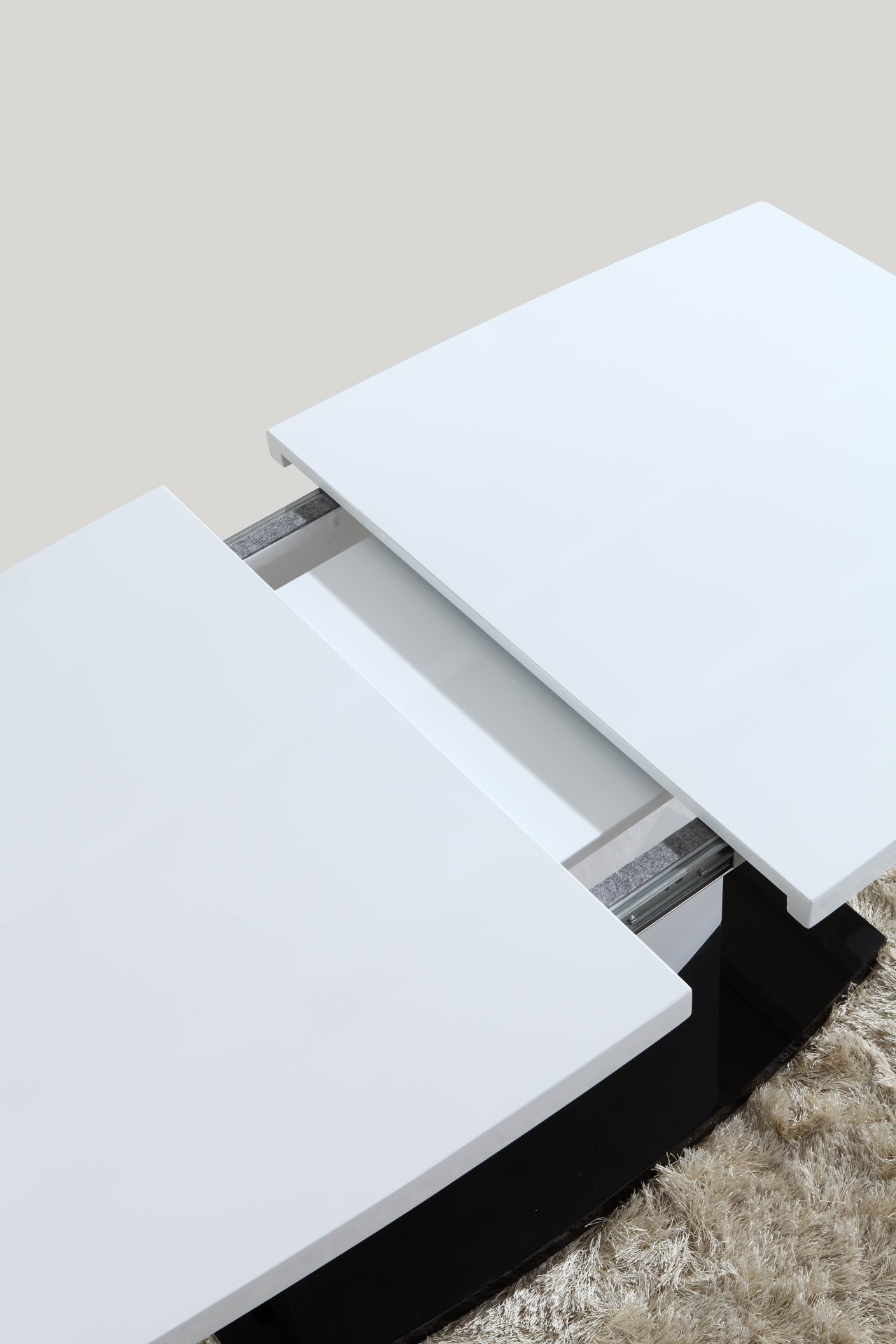 Stol na razvlačenje od MDF-a bijelog visokog sjaja, donja ploča postolja u boji crnog visokog sjaja.