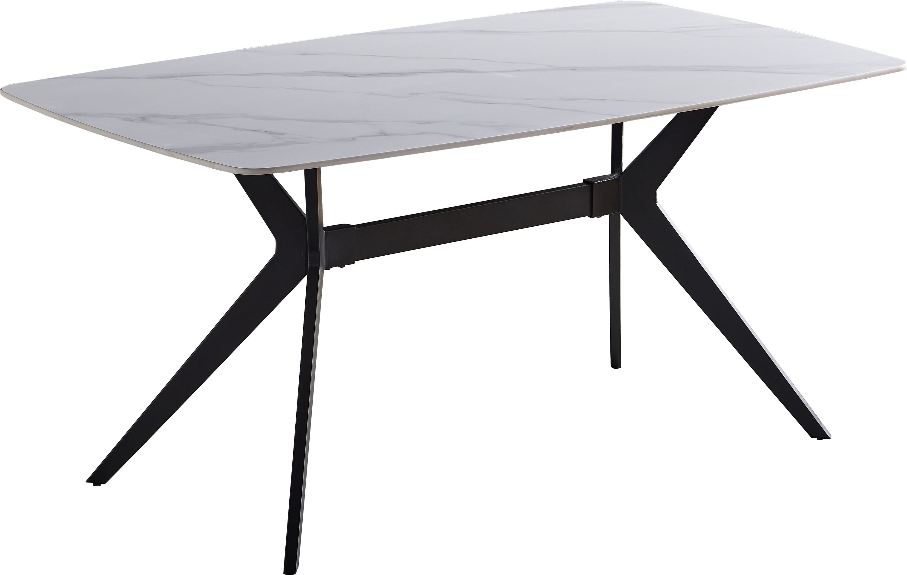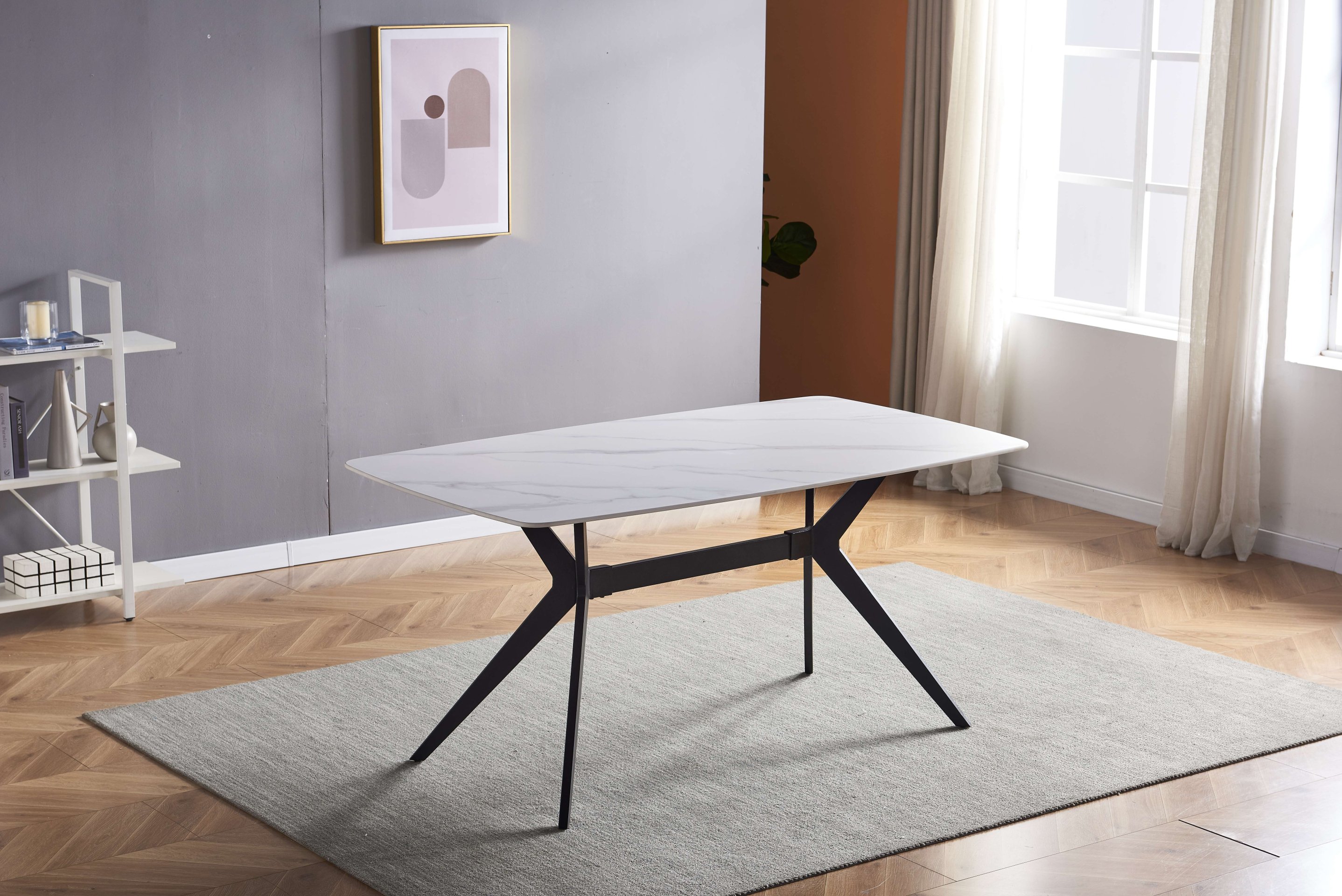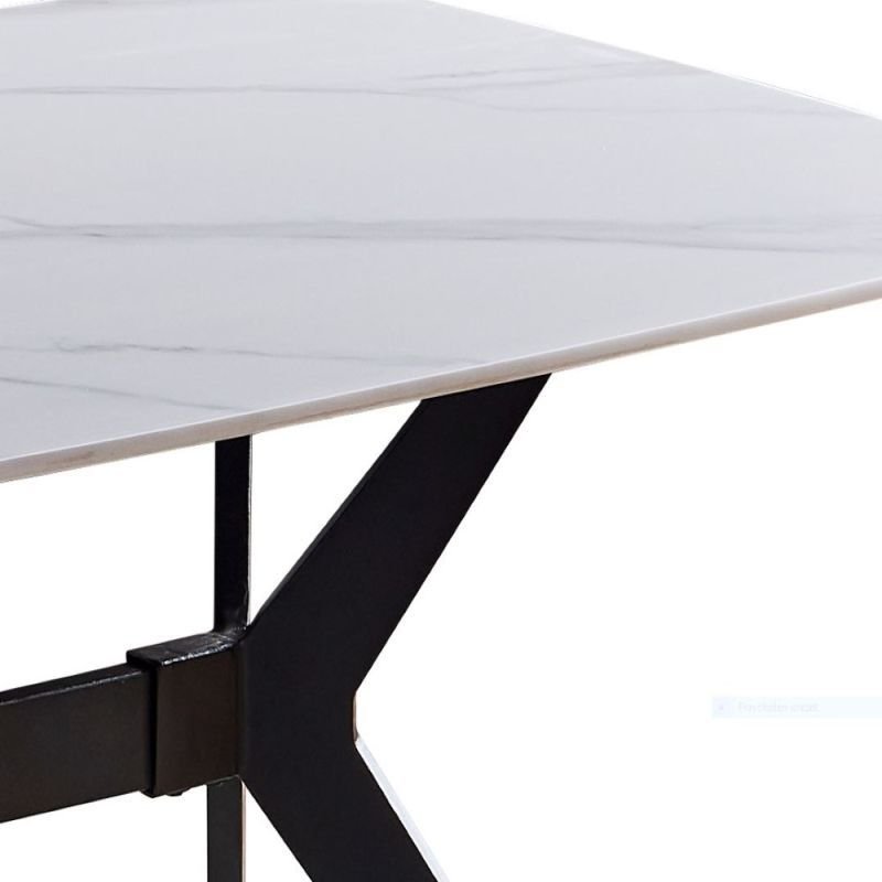 Konstrukcija stola oslanja se na čvrste metalne noge u obliku slova X, koje pružaju maksimalnu stabilnost i nosivost do 120 kg. Crno prašno lakiranje nogu ne samo da štiti metal od korozije i oštećenja, već i daje industrijski, moderan izgled koji se savršeno uklapa s elegantnom bijelom površinom. Ova kombinacija materijala i boja unosi ravnotežu između topline doma i suvremenog dizajna.