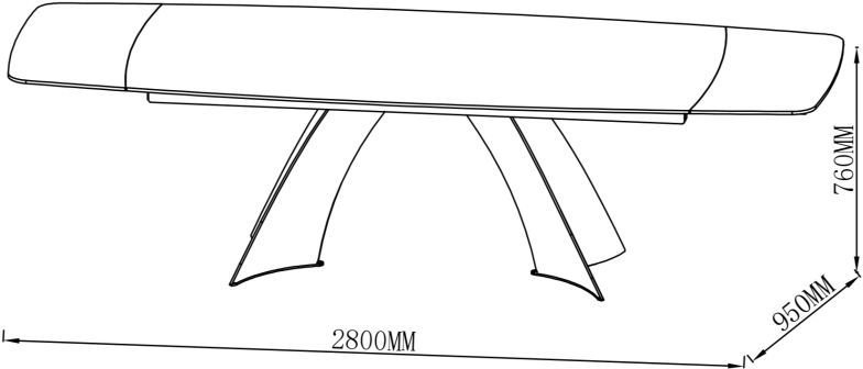 Stol ima osnovnu ploču dimenzija 200x95 cm, koja se pomoću dviju integriranih produžetaka od 40 cm proširuje na 240 cm ili najviše 280 cm. Mehanizam za proširenje ugrađen je izravno u ploču stola i omogućuje glatko, sigurno i stabilno pomicanje bez potrebe za dodatnim dijelovima. Za upotrebu je potrebno samo pričvrstiti metalno postolje, što pojednostavljuje montažu i omogućuje brzu pripremu za korištenje. Ovim sustavom stol se prilagođava broju gostiju i veličini prostora, što ga čini idealnim za dinamična kućanstva ili manje blagovaonice, gdje je prostor dragocjen.