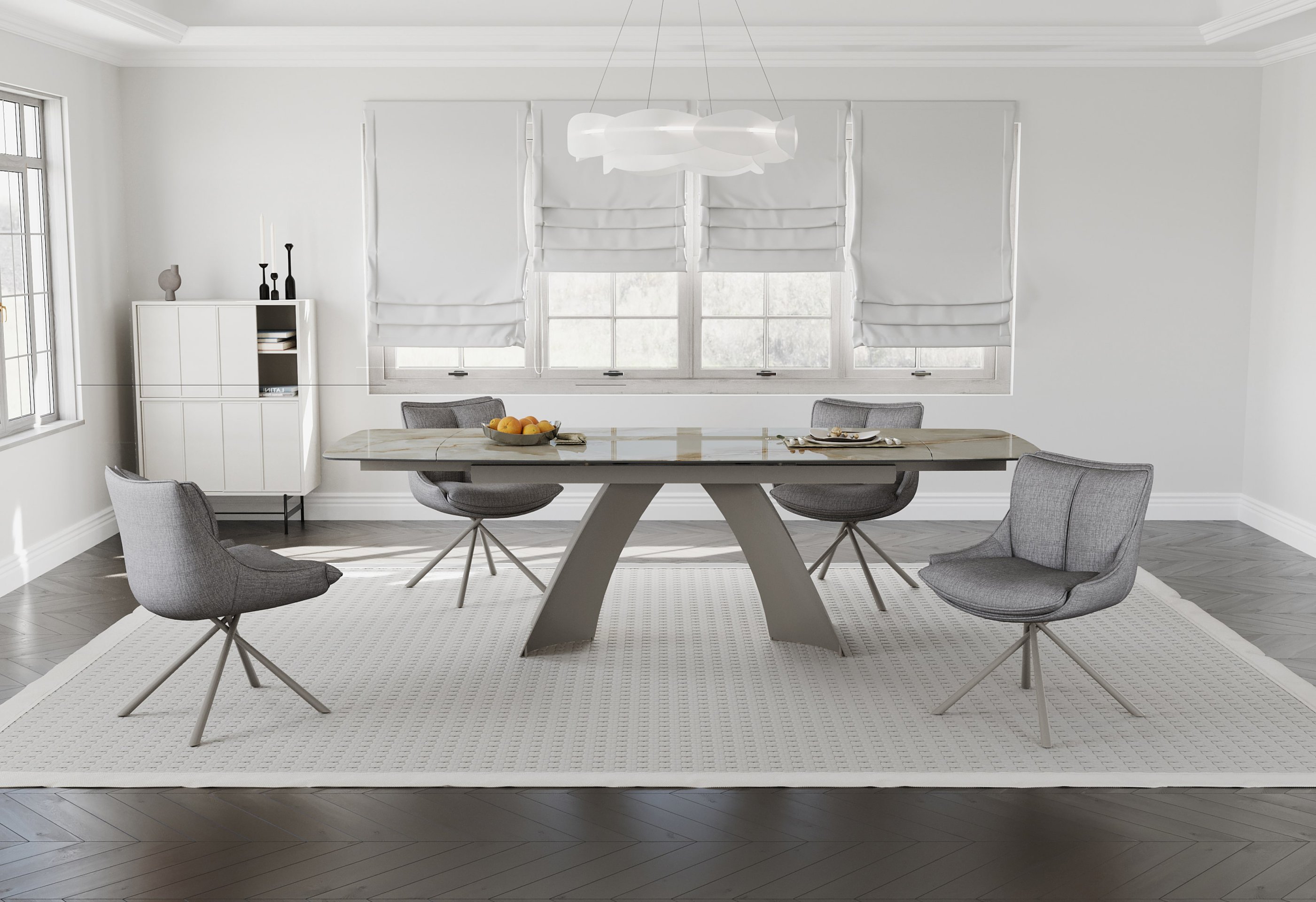 Proširivi stol Tokyo dizajniran je tako da povezuje praktičnost i estetski izraz. Njegova površina u izgledu mramora djeluje prestižno, a istovremeno se lako čisti – dovoljna je samo vlažna krpa i blago sredstvo za čišćenje. Zbog kombinacije keramike i stakla otporan je na ogrebotine, mrlje i toplinske utjecaje, pa izgled ostaje nepromijenjen i nakon godina korištenja. Stol se odlično slaže s različitim vrstama stolica, bilo metalnim, drvenim ili tapeciranim, te se lijepo uklapa u blagovaonice, otvorene dnevne prostore ili suvremene kuhinje.